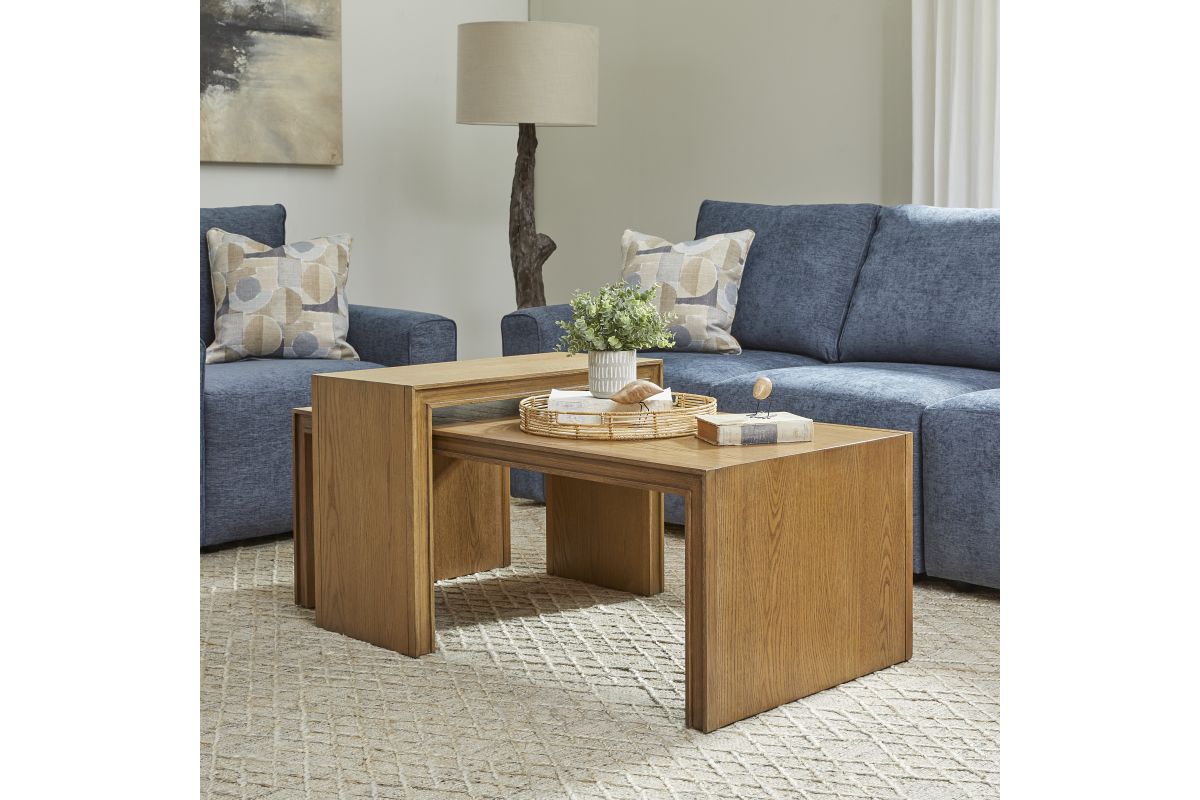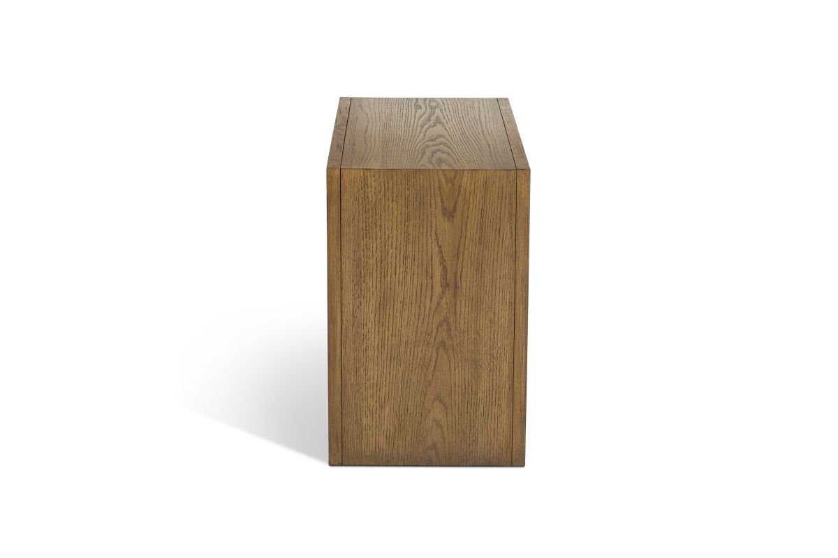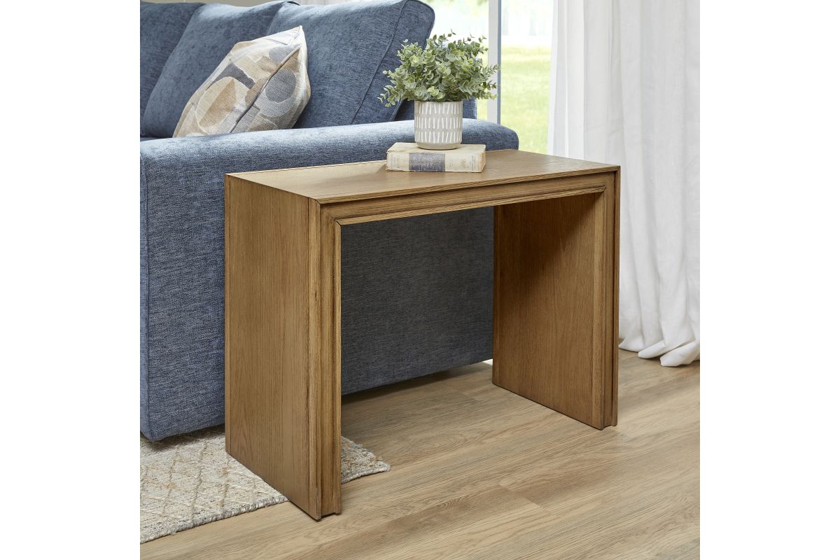 Add effortless style and architectural appeal to your living room with the Waterfall accent table. Featuring a timeless silhouette defined by clean lines and simple geometric shapes, this table is distinguished by its striking waterfall-edge design. Tier this table over the coordinating Waterfall rectangular coffee table for added visual interest and function, or use it alone on its side as a C-table that conveniently nestles against a sofa to keep necessities nearby. The Waterfall accent table is well-crafted from solid rubberwood and oak veneers and features a warm, light oak finish for lasting beauty.