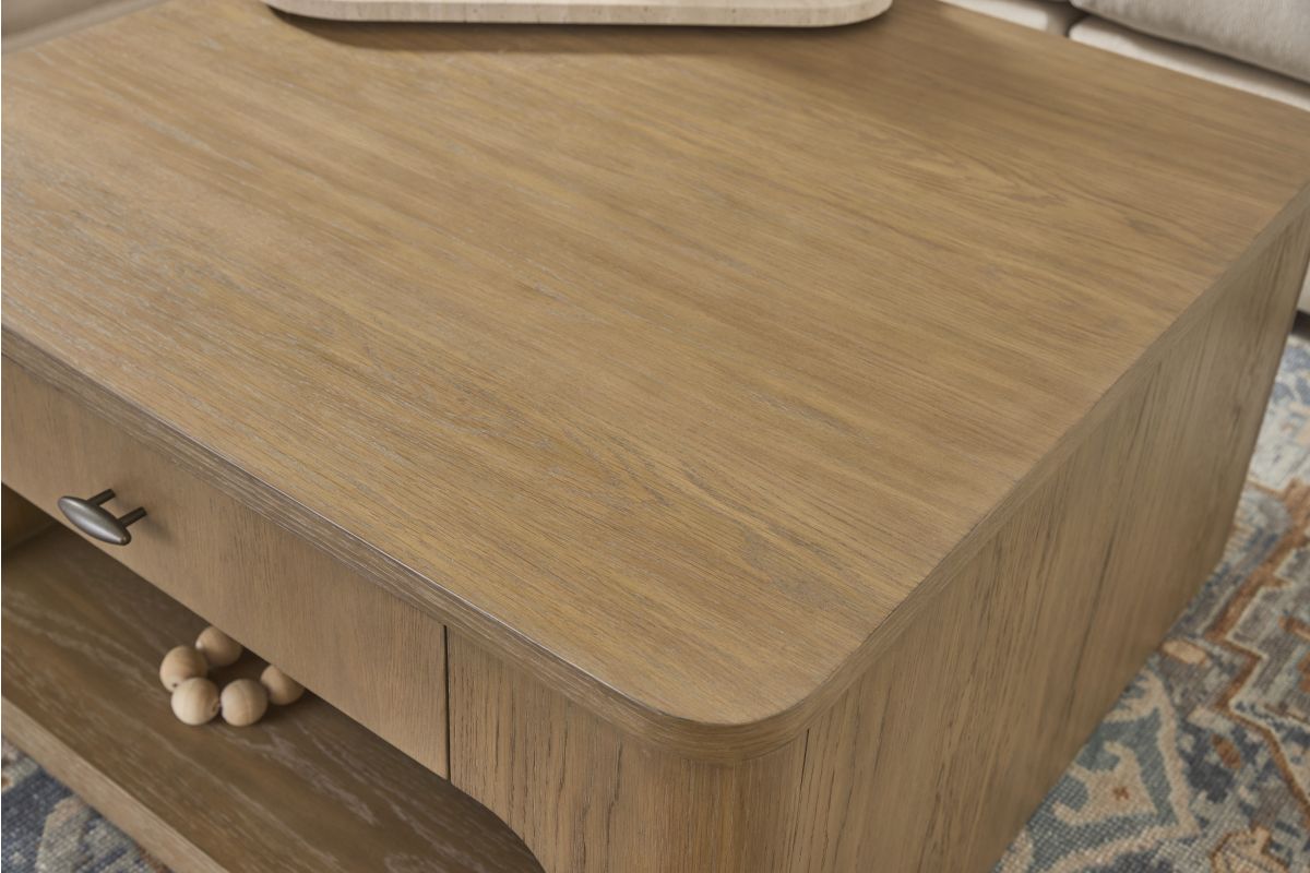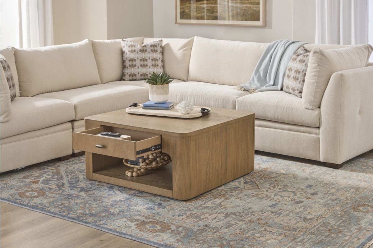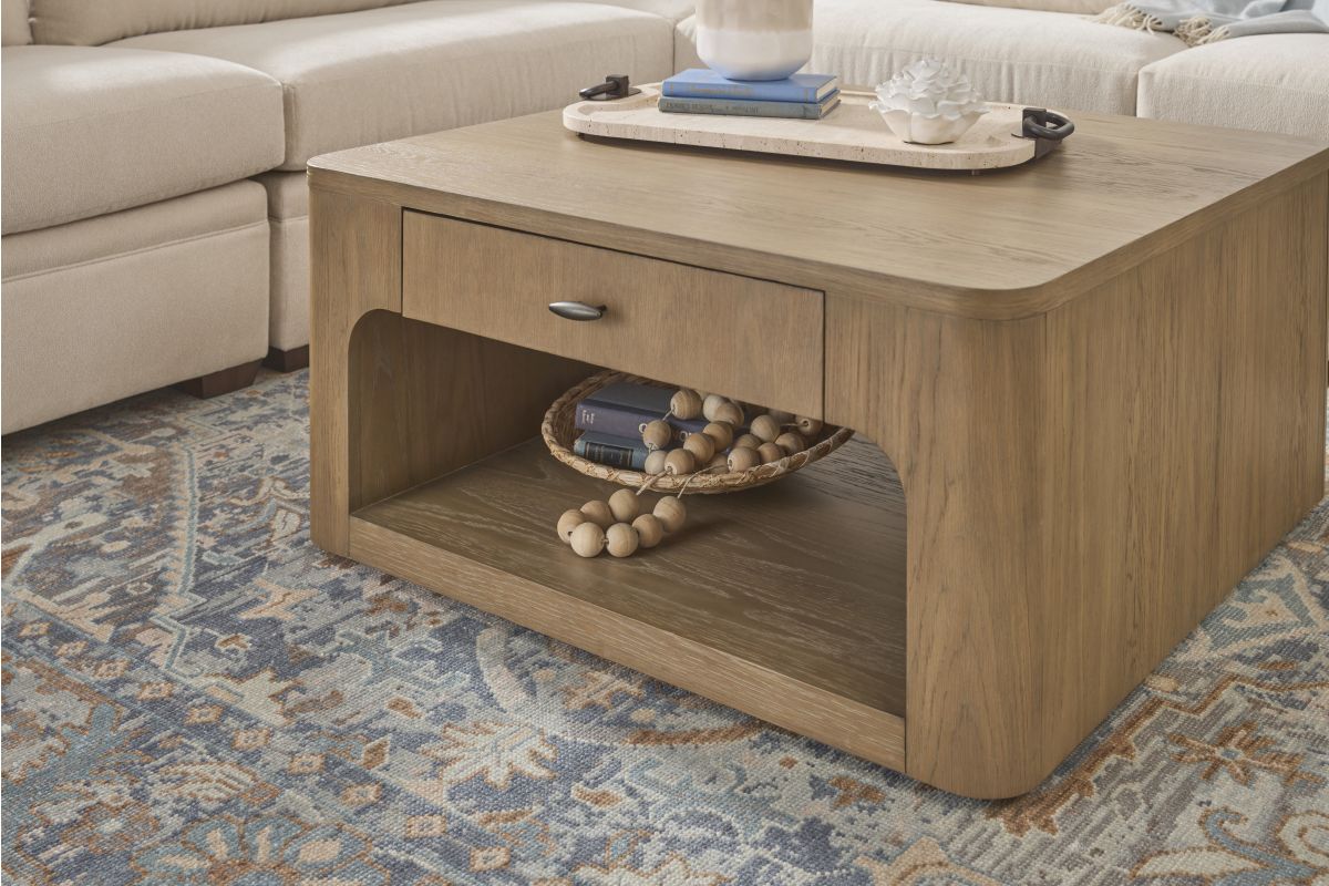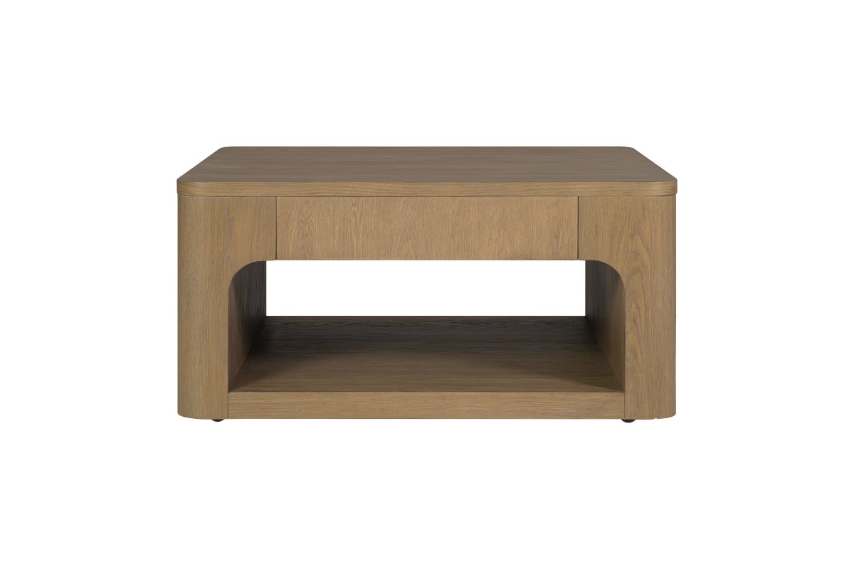 Simple geometry creates a look of timeless elegance for your living space with the Normandy square coffee table. Inspired by European architecture, this coffee table offers a minimalist silhouette featuring an inviting, warm driftwood finish. Designed for both style and functionality, it includes a convenient storage drawer to keep your essentials organized. Crafted with sustainability in mind, this Normandy coffee table is comprised of FSC-certified wood with a scratch-resistant finish for added durability. Standing on a dignified, strong frame, this piece is sure to be a conversation starter.