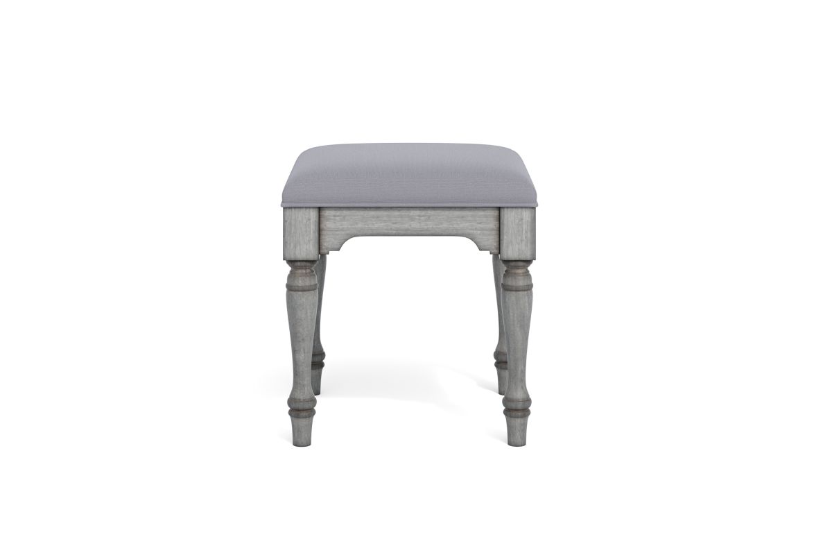 Comfortably prop up your feet in cottage-inspired style with the Plymouth ottoman. Featuring a distressed graywash finish and turned legs for a charming vintage look, this ottoman is upholstered in a soft, easy-to-clean coordinating fabric—making it ideal to use for impromptu seating when needed. Conveniently store the ottoman under the coordinating Plymouth sofa table when not in use. Sold as set of two.