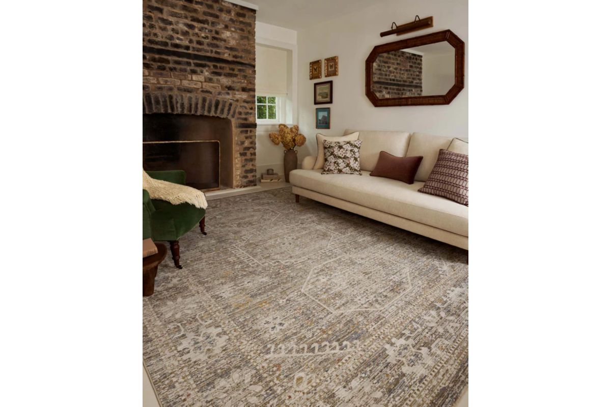 The Ida Collection from Chris Loves Julia x Loloi is a vintage-inspired area rug with a soft, subtly textured pile similar to hand-knotted rugs. The rugs gentle distressing creates a timeless look, while its durability and earthy colorways make it a great choice for the busiest rooms of the home, especially living rooms, kitchens, and hallways. Ida is power-loomed of easy-to-clean, no-shed shrink polyester in Turkey and OEKO-TEX certified, ensuring its materials don't contain harmful substances.