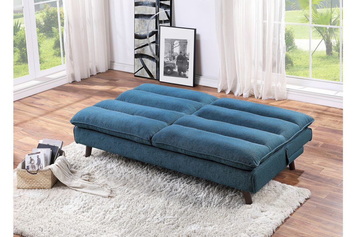 Designed for placement in your casual living space, the Mackay Collection provides a multifunctional seating space that meets your downtime needs. With a quick adjustment to the adjustable click mechanism, this armless sofa turns into a flat platform perfect for sleeping or just hanging out. The Mackay Collection is offered blue fabric for versatile placement within your decorative environment.