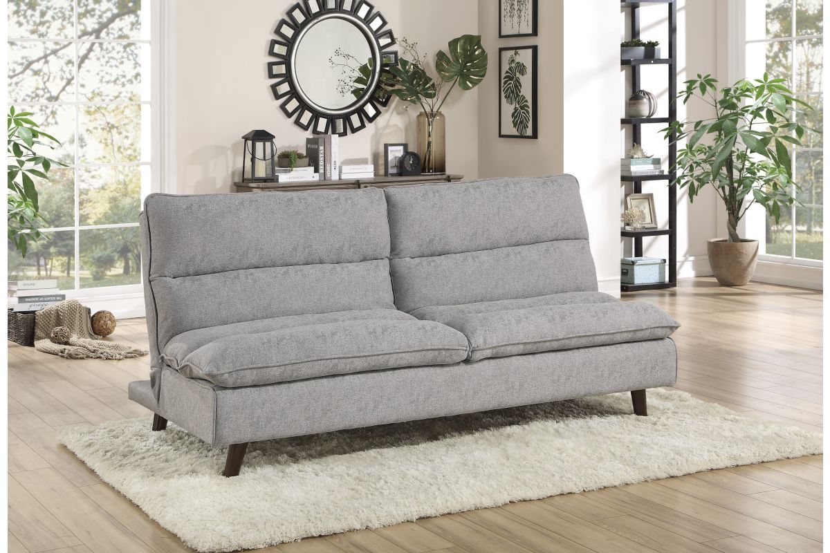 Designed for placement in your casual living space, the Mackay Collection provides a multifunctional seating space that meets your downtime needs. With a quick adjustment to the adjustable click mechanism, this armless sofa turns into a flat platform perfect for sleeping or just hanging out. The Mackay Collection is offered gray fabric for versatile placement within your decorative environment.