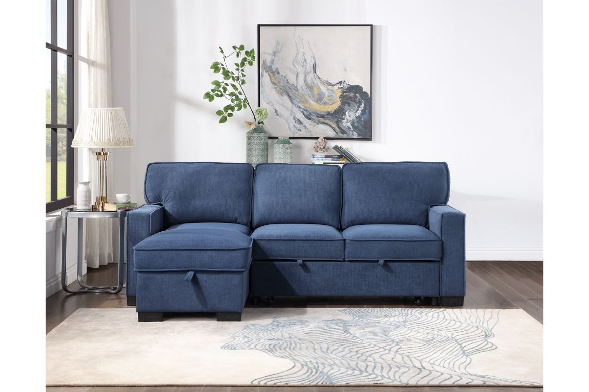 Designed for both style and versatility, the Fila sectional features clean lines, plush cushions, and a striking blue upholstery that adds a modern touch to any room. Its spacious seating provides everyday comfort, while the built-in sleeper easily transforms your living space into a guest-ready retreat. Crafted for durability and convenience, this sectional blends contemporary design with practical functionality.