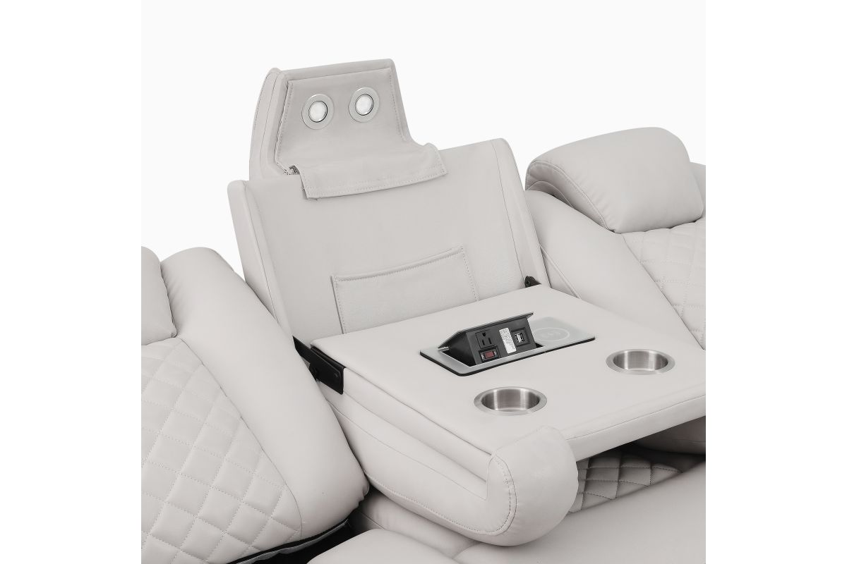 Sleek gray upholstery and a modern silhouette give the Radiant sofa a refined, versatile look. Power reclining allows you to find your ideal position with ease, while plush cushions provide lasting comfort and support. Designed for both style and durability, this sofa is the perfect balance of contemporary elegance and everyday relaxation.