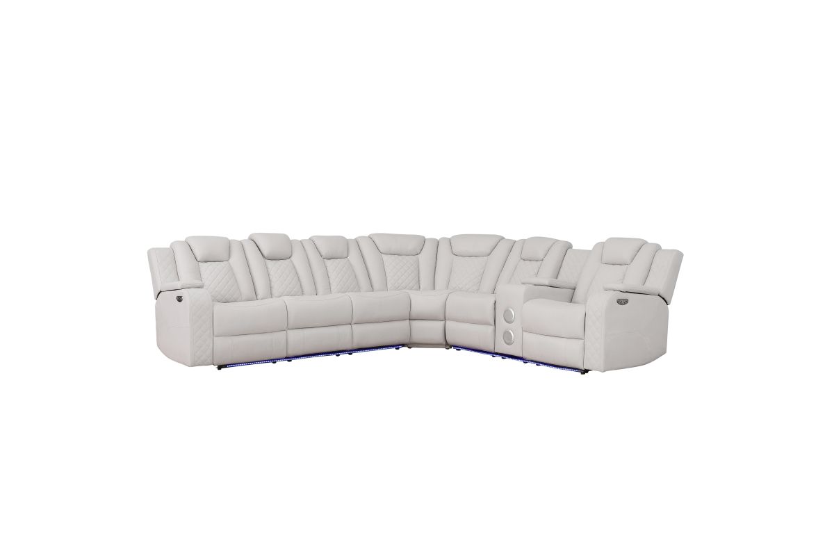 Modern and inviting, the Radiant sectional is upholstered in a sleek gray finish that complements any décor. Generous seating and smooth reclining functions ensure comfort for family and guests, while plush cushioning enhances relaxation. Built with lasting quality and contemporary style, this sectional makes a versatile centerpiece for today’s living spaces.