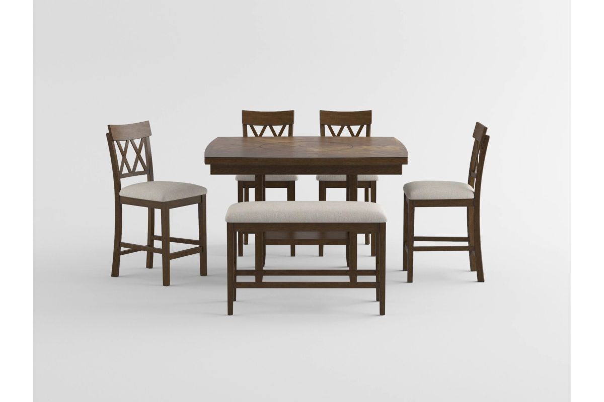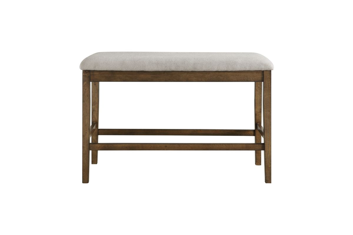 Sharing a meal with friends and family is made easy with the Balin Collection. Designed for maximum efficiency and personal decorative preference, each feature of the collection lends individual character to the overall design. The counter height bench features gray textured fabric that covers the padded seat. The mindy veneer of the bench is finished in light oak for neutral accent to your casual dining space.