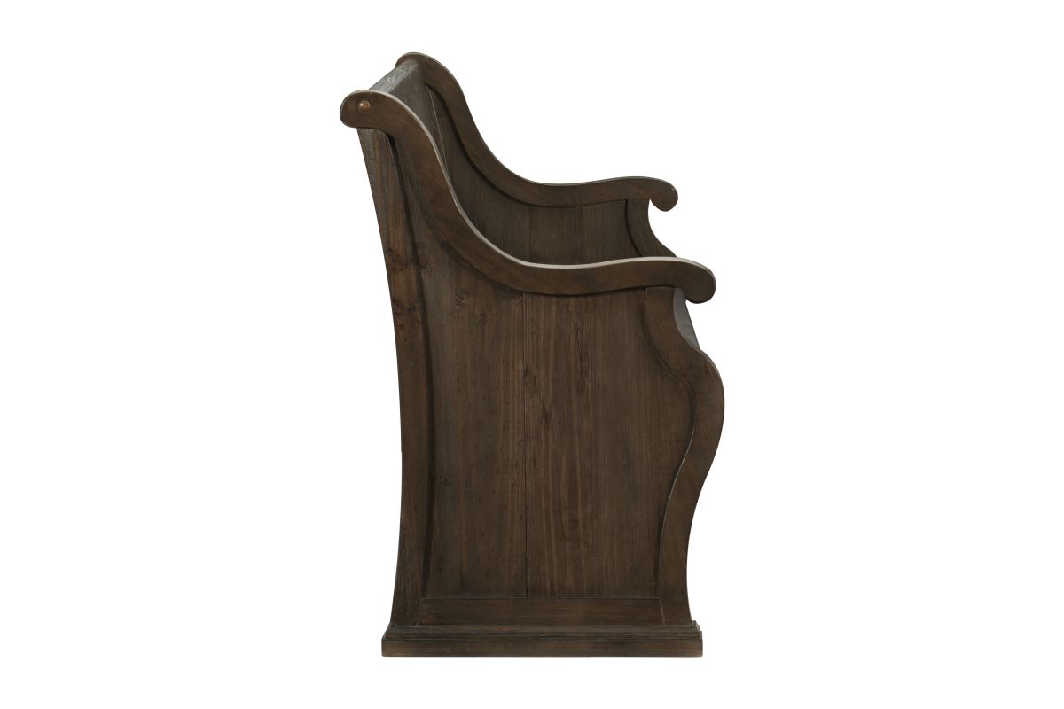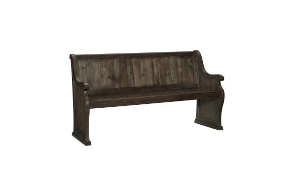 With styling that hints at times gone past, the Gloversville Collection’s stately presence will be the perfect addition to your dining room. The wood bench takes design inspiration from old-fashioned church pews, its curved arms giving way to the unfettered seating. The pine veneer and pine solids of the bench feature a brown finish that furthers the classic look of the collection.