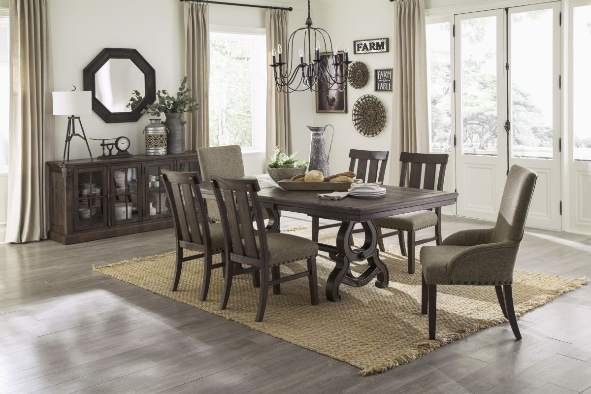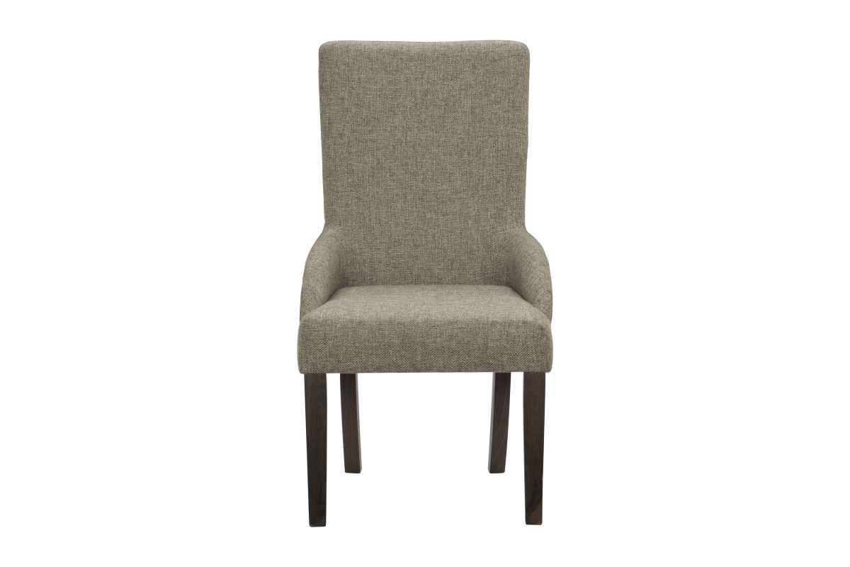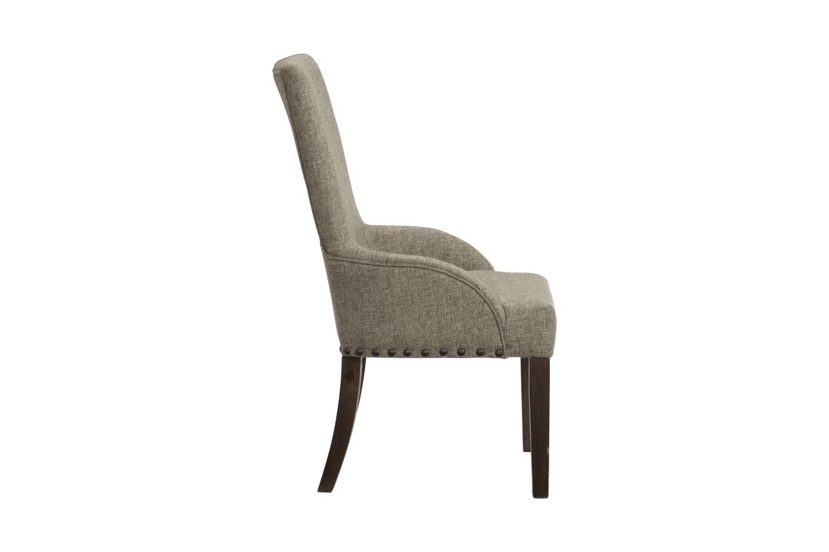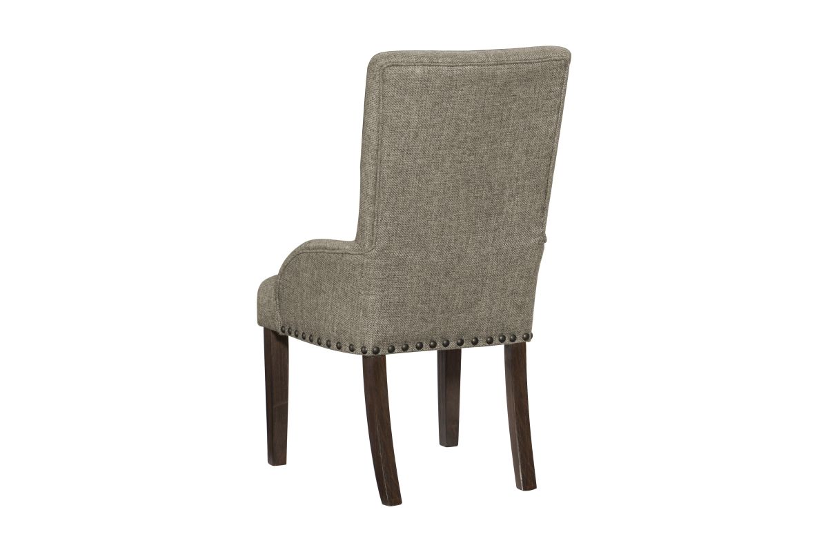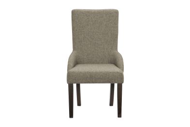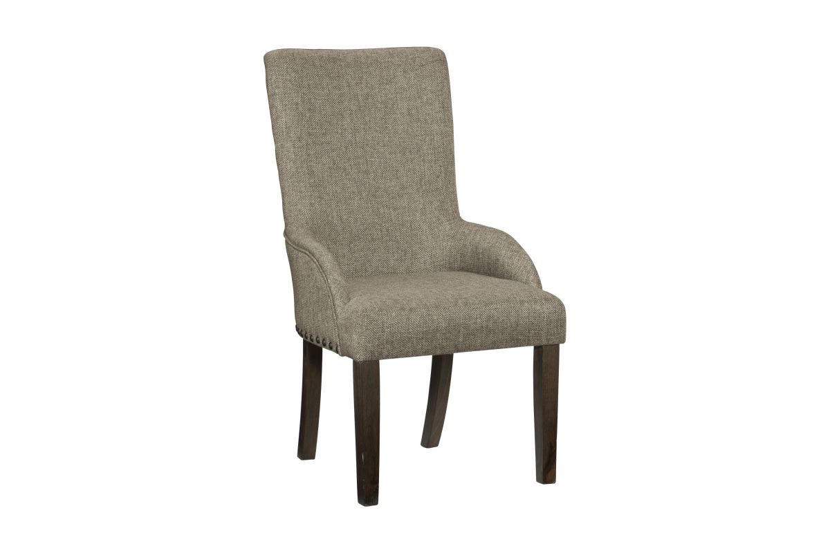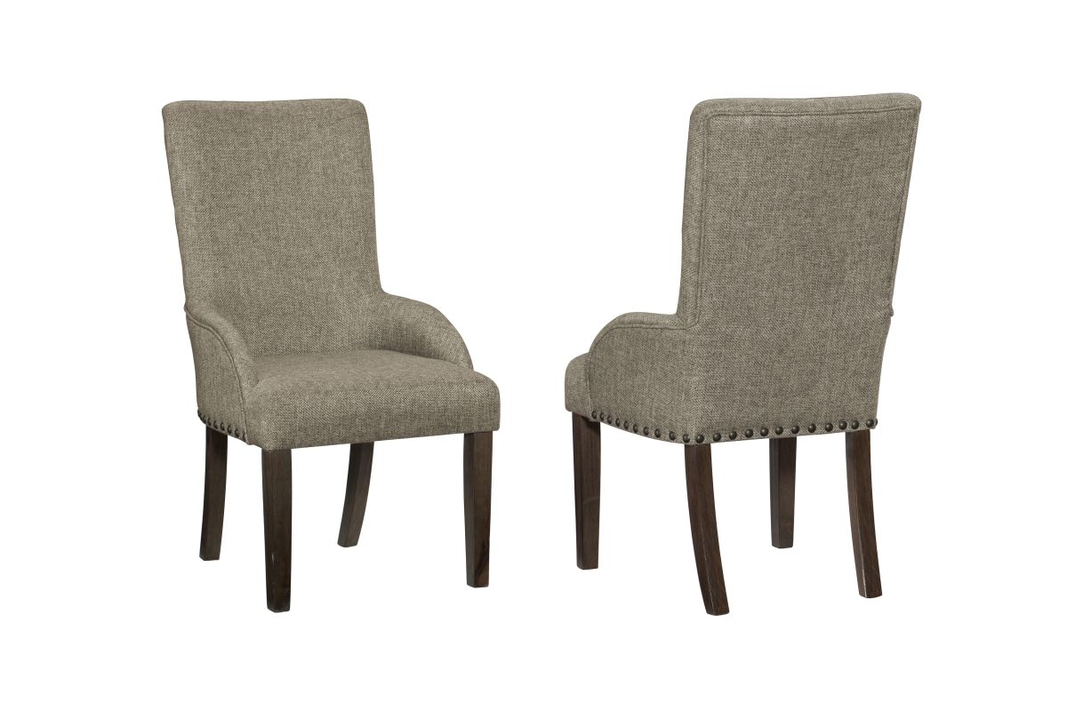 With styling that hints at times gone past, the Gloversville Collection’s stately presence will be the perfect addition to your dining room. The upholstered armchair is complemented by the neutral toned fabric and nailhead accent. The armchair’s legs feature a brown finish that furthers the classic look of the collection. Sold as a set of two.