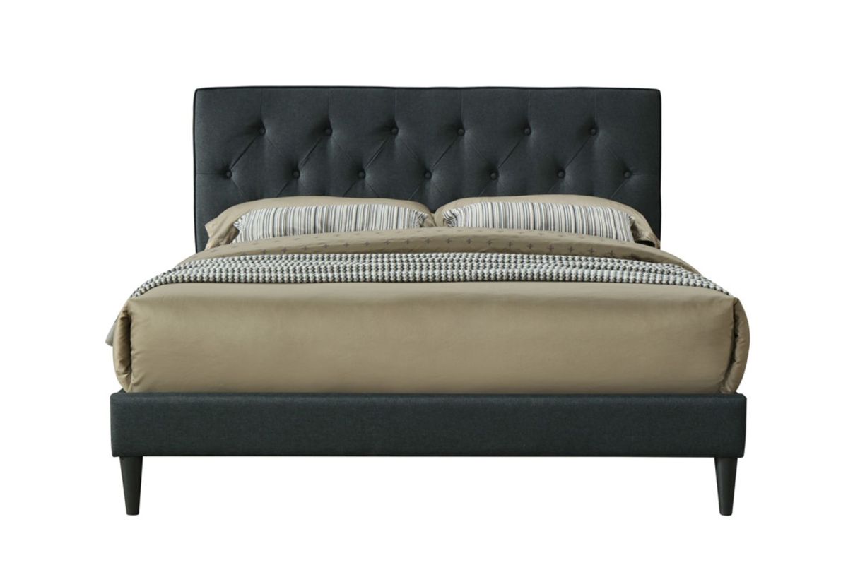 - Plush charcoal button-tufted headboard for a refined, tailored look