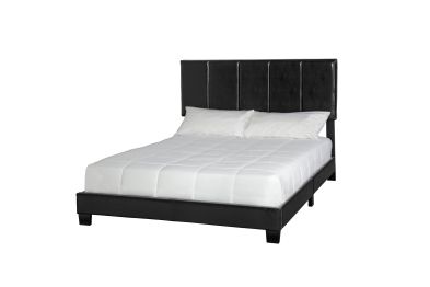 Sleek, bold, and built for modern sophistication, the Harper Upholstered Bed in a Box makes a striking centerpiece for any bedroom. Featuring a black faux leather finish and a channel-tufted headboard, this bed offers contemporary styling with a touch of luxurious appeal.