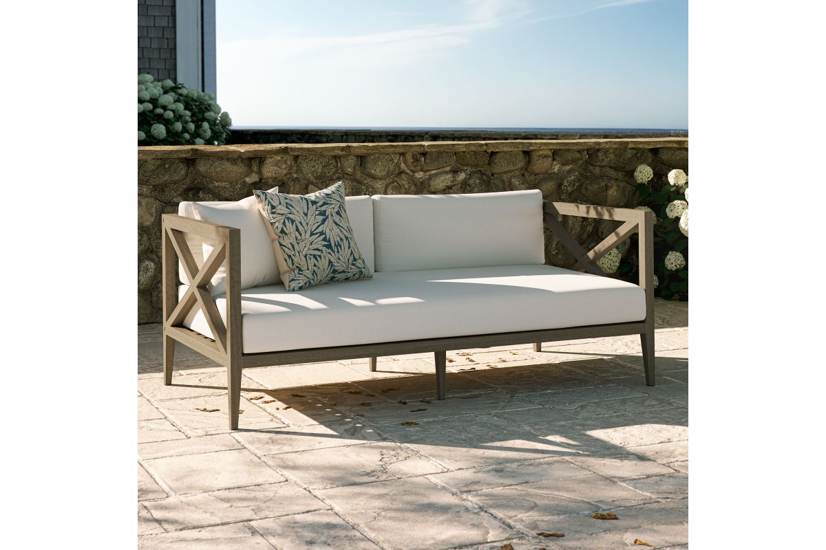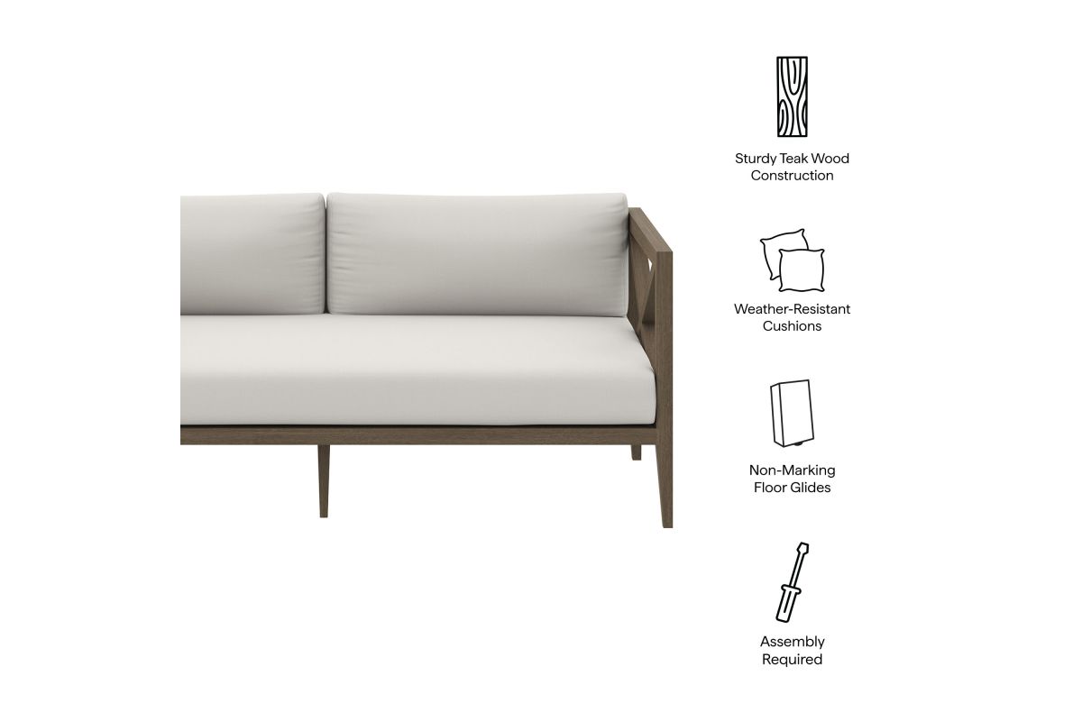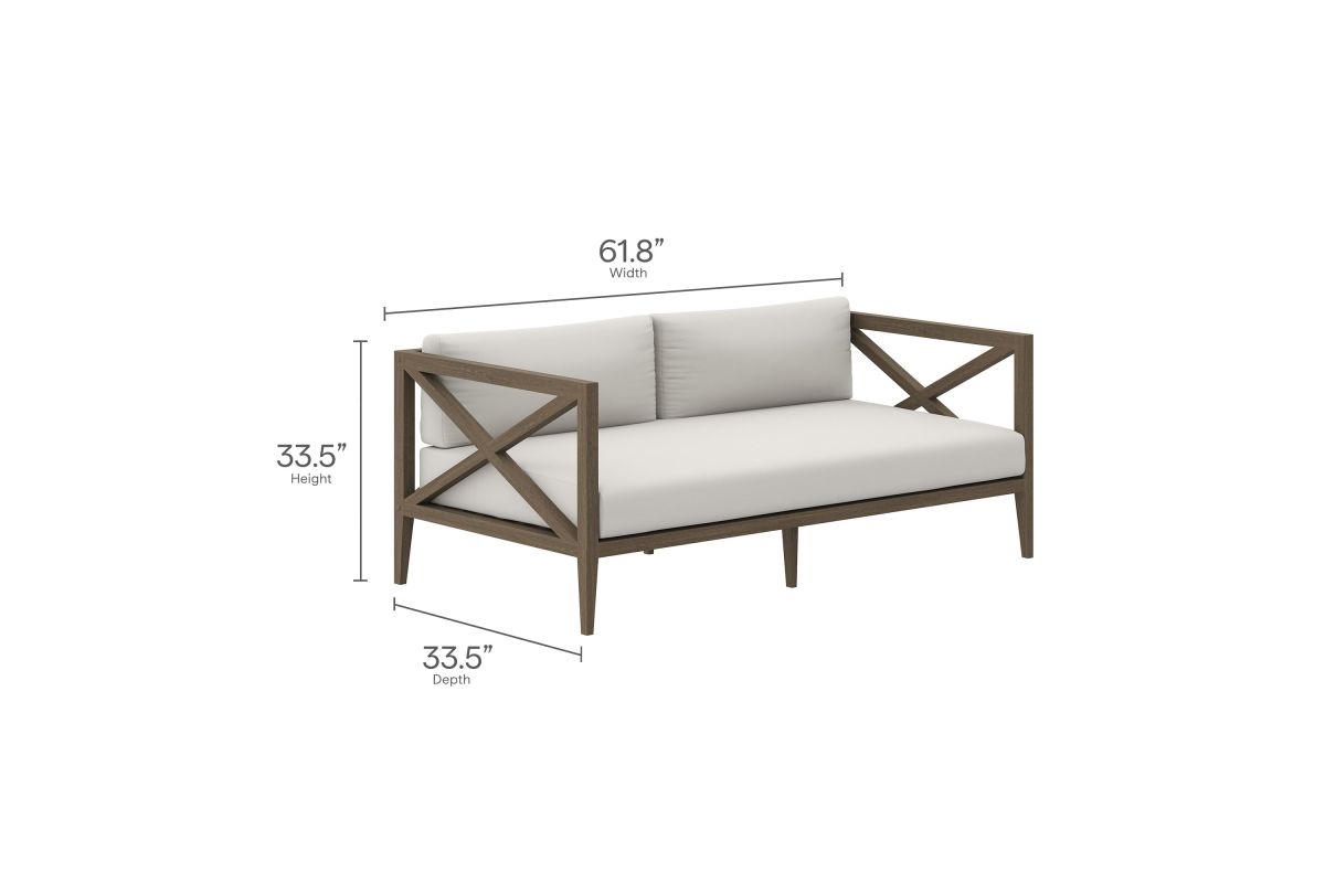 Soak in nature’s beauty with the Northlake Outdoor Loveseat, a stylish and comfortable addition to any outdoor space. Crafted from sturdy teak wood, this 2-seater outdoor couch features a distinctive cross-back design for enhanced support and a refined aesthetic. The slatted seat base ensures durability and airflow, while the plush, all-weather cushions offer water-resistant, fade-resistant, and quick-drying performance for year-round comfort. Designed for patios, porches, balconies, and garden lounges, the Northlake Teak Patio Loveseat blends timeless craftsmanship with modern outdoor luxury. This patio furniture collection includes non-marking floor glides for added protection. Assembly required. Weight Capacity: 500 lbs.