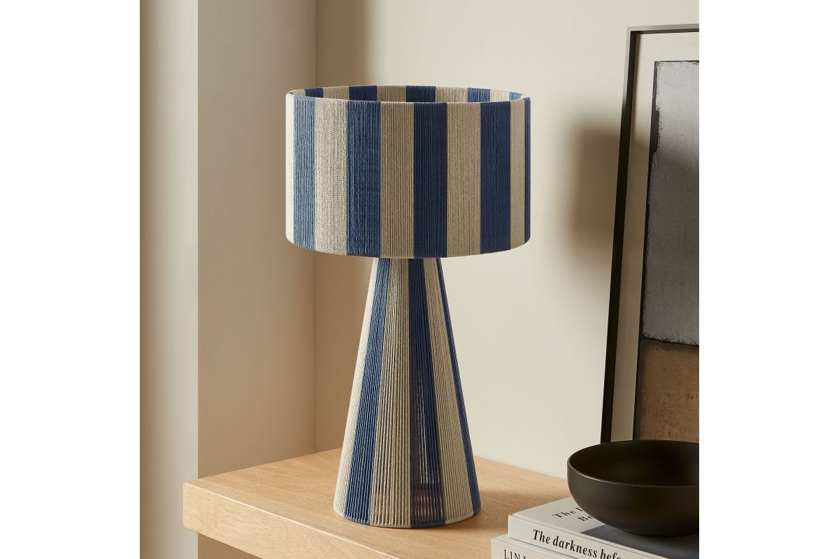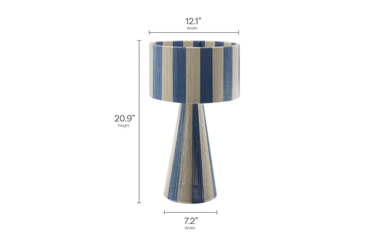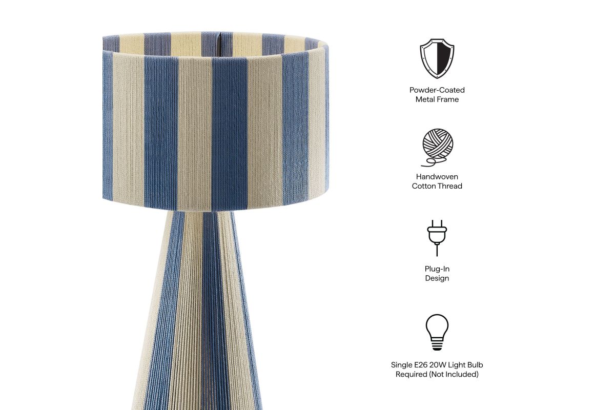 Add a stylish, modern touch to your space with the Renae Table Lamp. Featuring a bold striped design, this trendy lamp combines a powder-coated metal frame with a lamp shade and base made from hand-woven cotton thread, offering a chic, textured look. The evenly spaced stripes flow seamlessly from the top of the shade down to the pedestal bottom, creating a balanced, continuous pattern. This retro table lamp fits beautifully in contemporary European or boho style interiors, bringing an Iberian flair or Moroccan vibes to any room. UL listed, the Renae Cotton Table Lamp requires a single E26 25W bulb (not included) and features an 83" canvas color power cord, with the switch conveniently located on the inside of the lamp. Ideal as a cozy side table lamp or a unique entryway lamp, Renae arrives fully assembled and brings bohemian-inspired elegance to your home decor.
