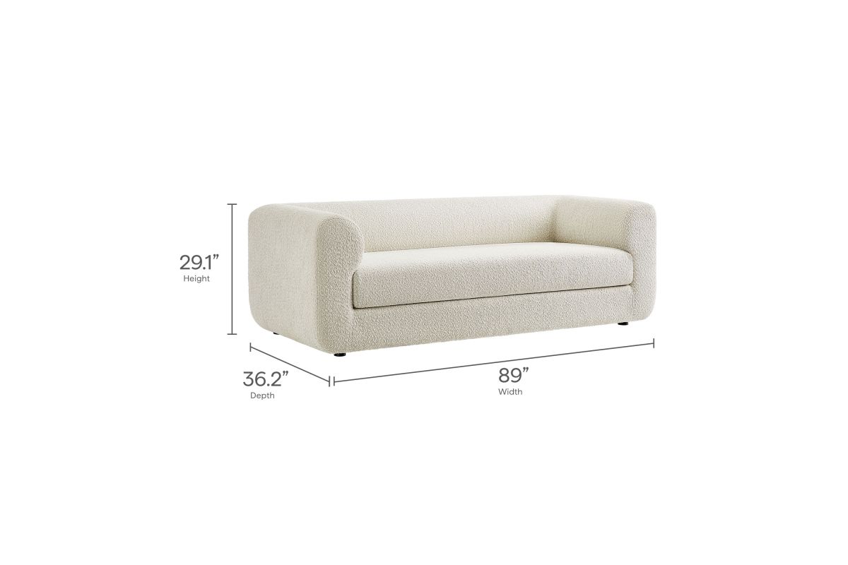 Sorry, the Leif 89" Boucle Upholstered Sofa by Modway is no longer available. We've left this page up for reference only. Check out the great alternatives on this page or call 248-481-2208 or Chat with a Gardner White Sales Specialist about similar products.