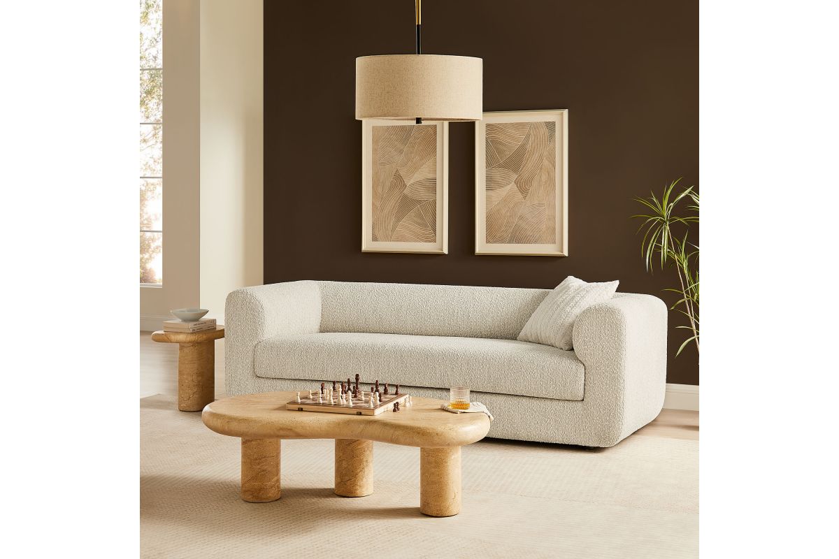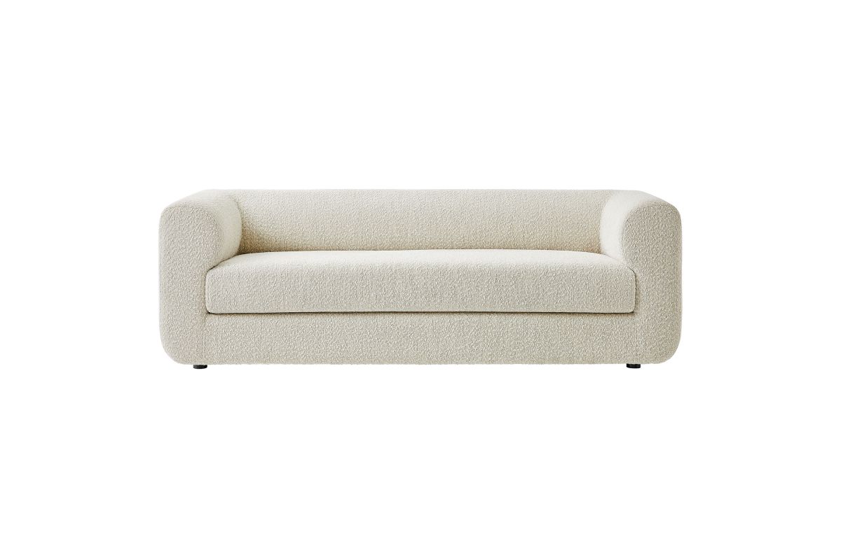 Sleek, sculptural, and effortlessly modern, the Leif Boucle Sofa makes a refined statement with its updated tuxedo silhouette and plush boucle fabric upholstery. Designed for both style and comfort, this 89-inch oversized boucle couch features a roll-arm frame that blends into the supportive backrest at the same height, giving it a structured yet inviting presence. A deep bench seat on this modern sofa offers ample space for lounging, while its foam padding and sinuous spring support provide lasting comfort. The low-profile sofa design rests on subtle solid wood legs, making this teddy sofa a chic focal point in living rooms, offices, or lounges. Fully assembled and ready to elevate your space. Weight Capacity: 800 lbs.