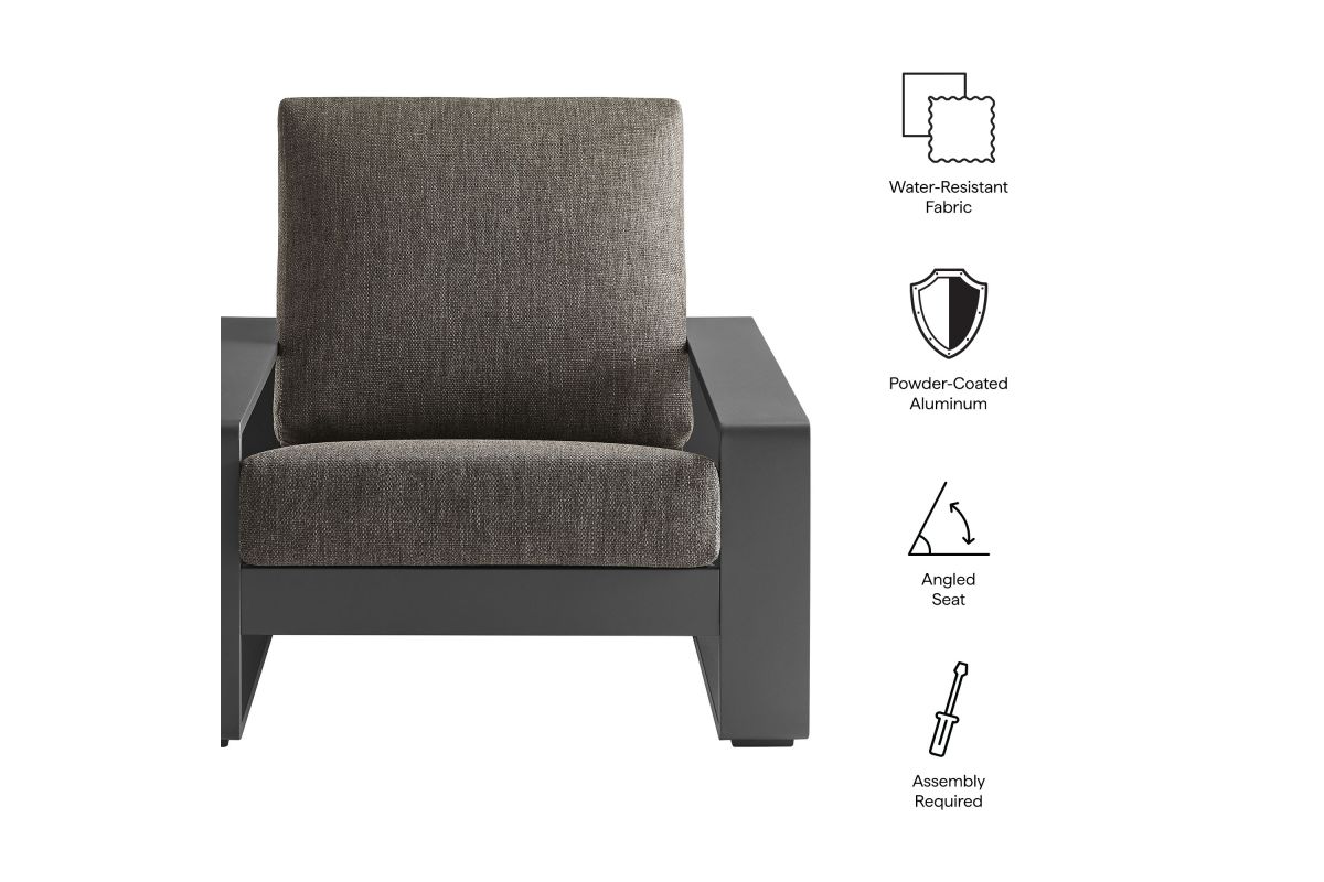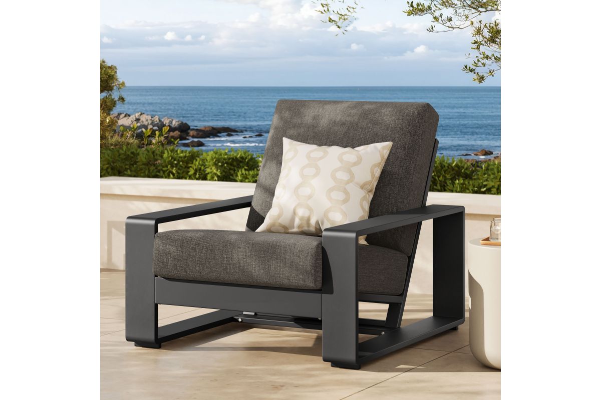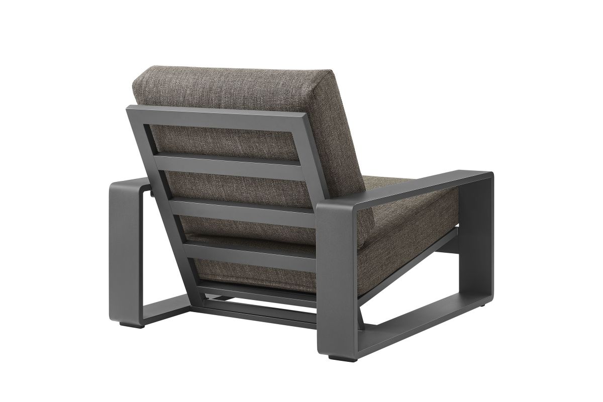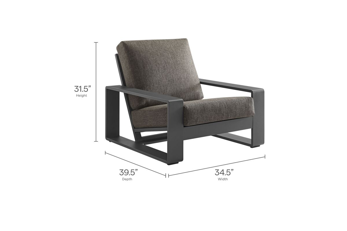 Unwind in sculptural sophistication with the Lirienne Outdoor Patio Armchair. Designed for modern relaxation, this statement-making outdoor chair showcases a sleek, rectangular frame crafted from durable powder-coated aluminum, offering both resilience and style. The deep, angled seat and plush foam cushions invite you to sink into lasting comfort, while the smooth, weather-resistant upholstery is stain-resistant and easy to maintain with removable, washable covers. The Lirienne Outdoor Club Chair is as practical as it is stylish, making it the perfect outdoor retreat for leisurely lounging. Whether placed on a sun-drenched deck or a shaded patio, this aluminum oversized patio chair brings an air of refined ease to any alfresco setting. Weight Capacity: 300lbs.
