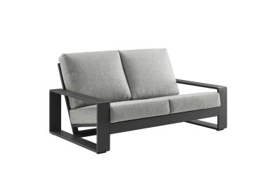 Unwind in sculptural sophistication with the Lirienne Outdoor Patio Loveseat. Designed for modern relaxation, this statement-making 2-seater sofa showcases a sleek, rectangular frame crafted from durable powder-coated aluminum, offering both resilience and style. The deep, angled seat and plush foam cushions invite you to sink into lasting comfort, while the smooth, weather-resistant upholstery is stain-resistant and easy to maintain with removable, washable covers. The Lirienne Aluminum Small Outdoor Couch is as practical as it is stylish, making it the perfect outdoor retreat for backyard lounging. Whether placed on a sun-drenched deck or a shaded patio, this outside couch brings an air of refined ease to any alfresco setting. Weight Capacity: 501 lbs.