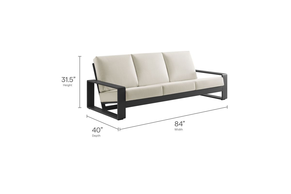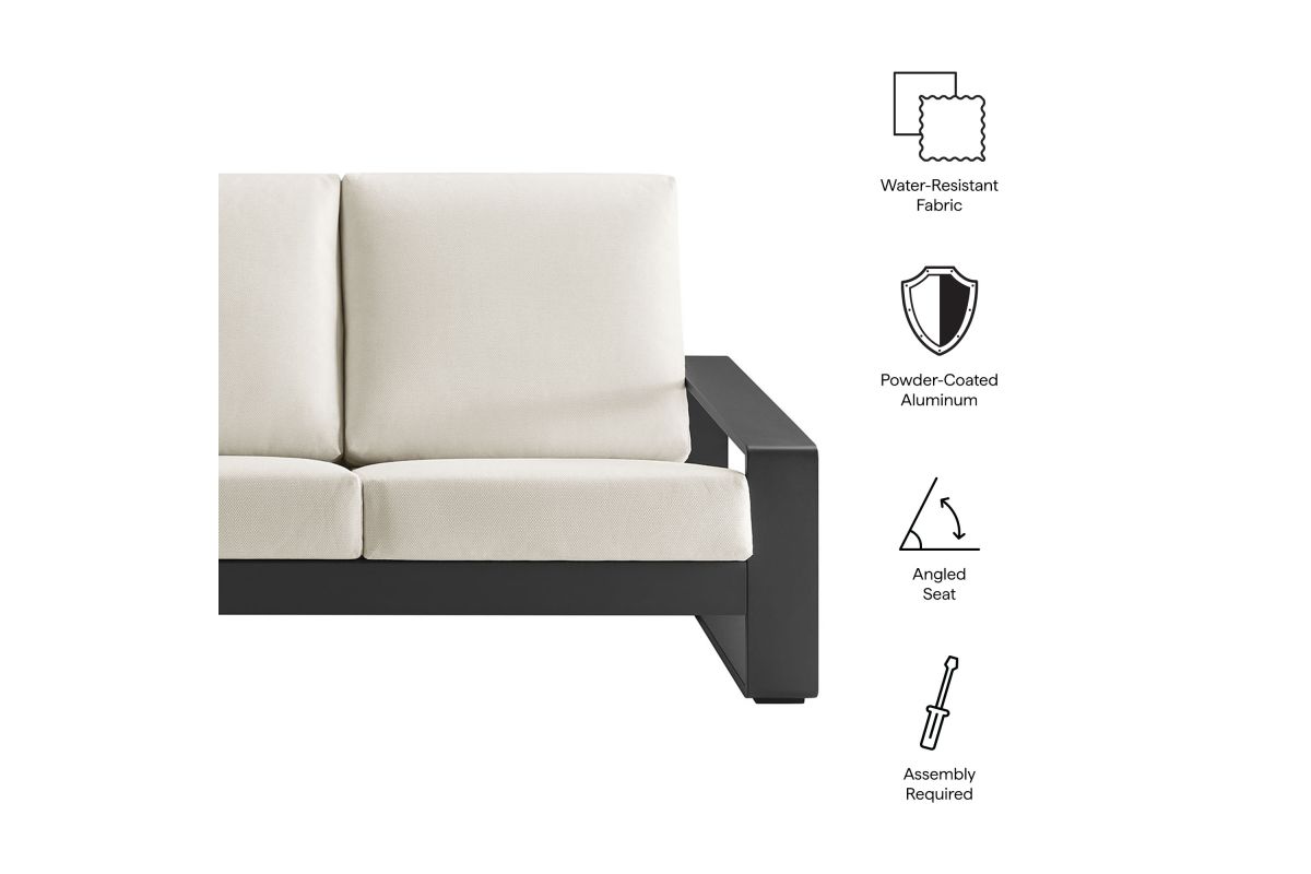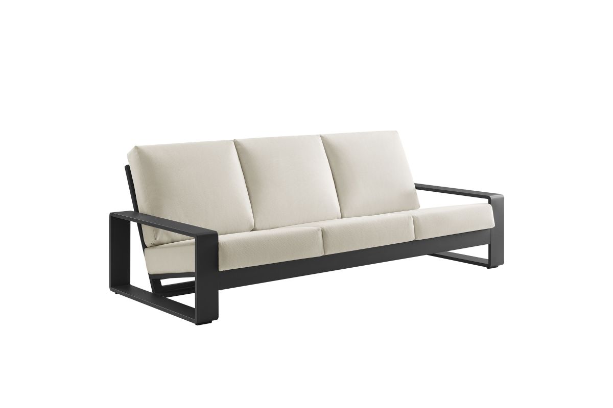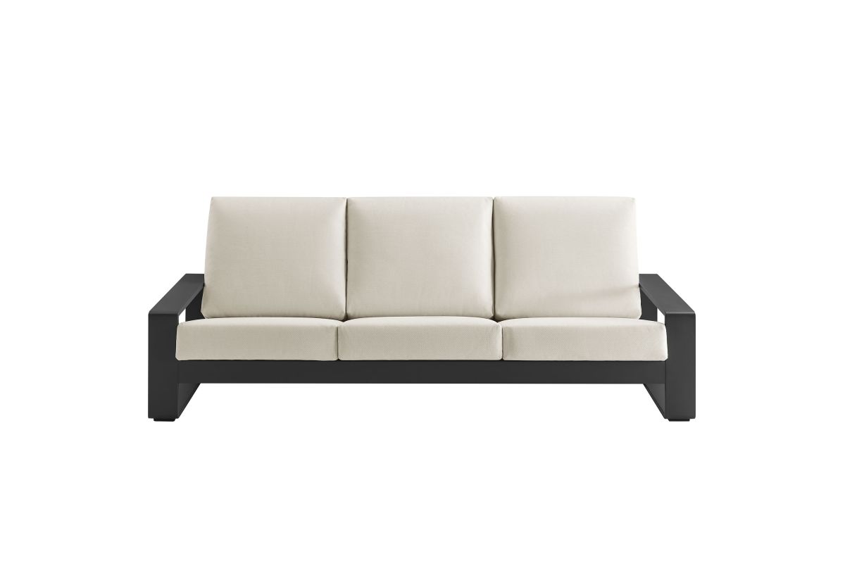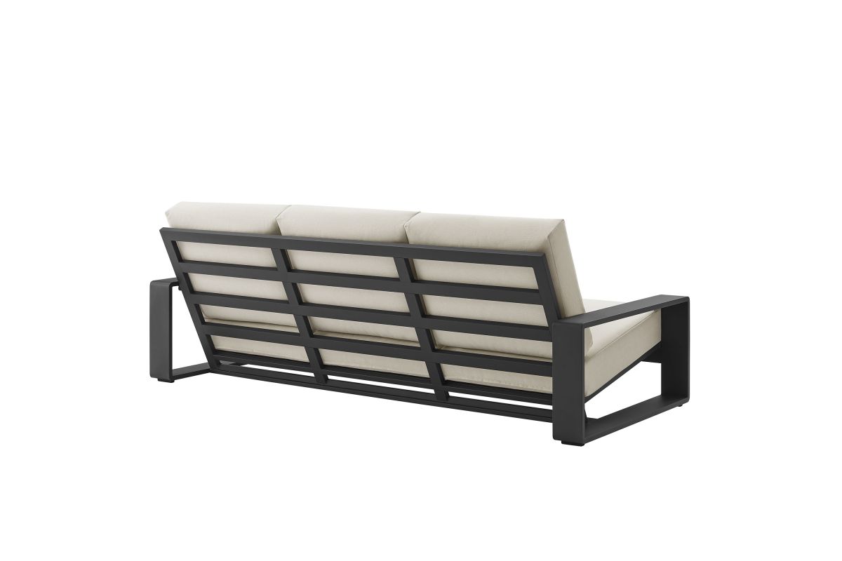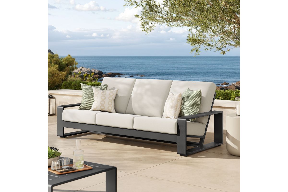 Unwind in sculptural sophistication with the Lirienne Outdoor Patio Sofa. Designed for modern relaxation, this statement-making 3-seater outdoor couch showcases a sleek, rectangular frame crafted from durable powder-coated aluminum, offering both resilience and style. The deep, angled seat and plush foam cushions invite you to sink into lasting comfort, while the smooth, weather-resistant upholstery is stain-resistant and easy to maintain with removable, washable covers. The Lirienne Aluminum Patio Sofa is as practical as it is stylish, making it the perfect outdoor retreat for backyard lounging. Whether placed on a sun-drenched deck or a shaded patio, this all-weather aluminum outdoor patio sofa brings an air of refined ease to any alfresco setting. Weight Capacity: 750 lbs.