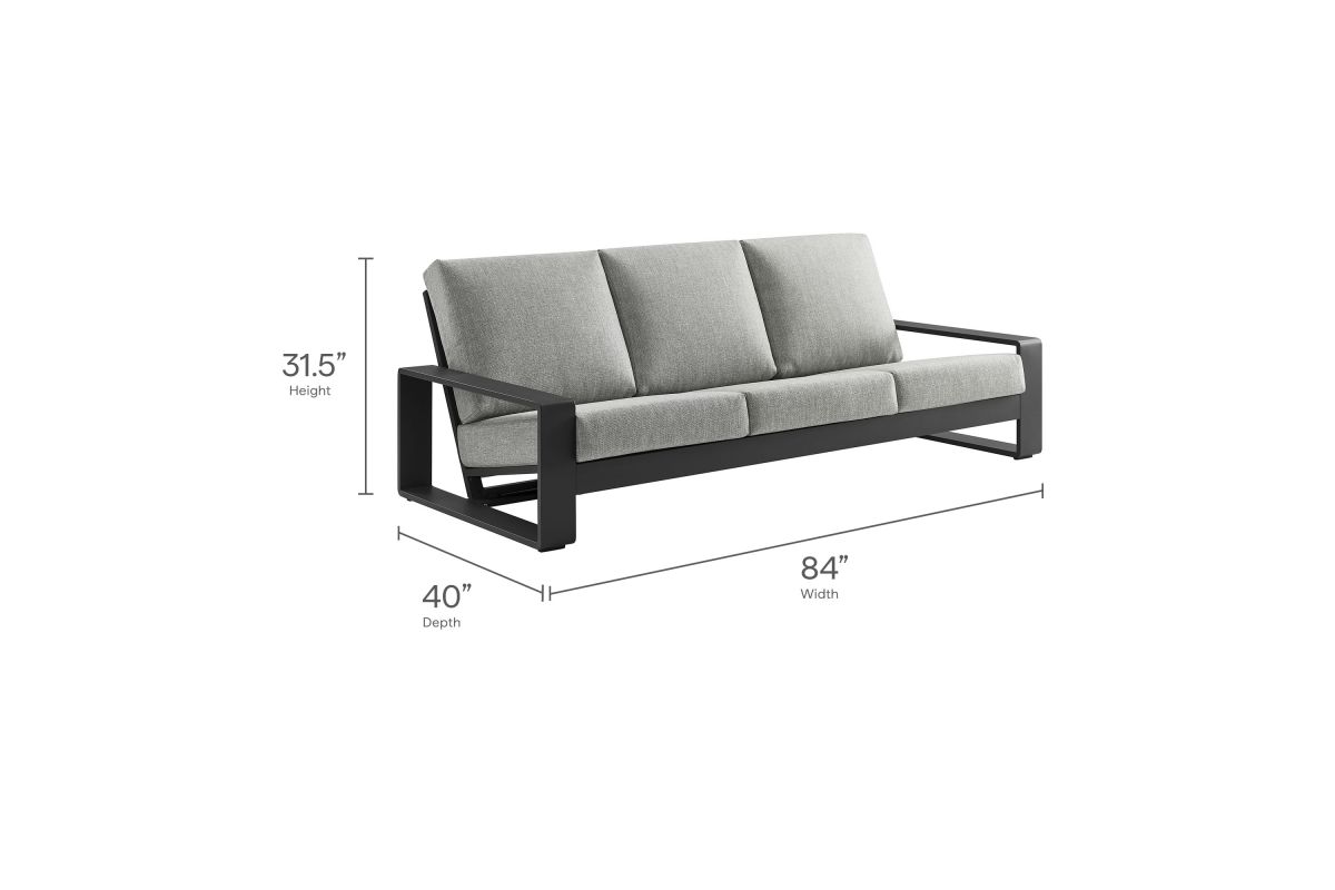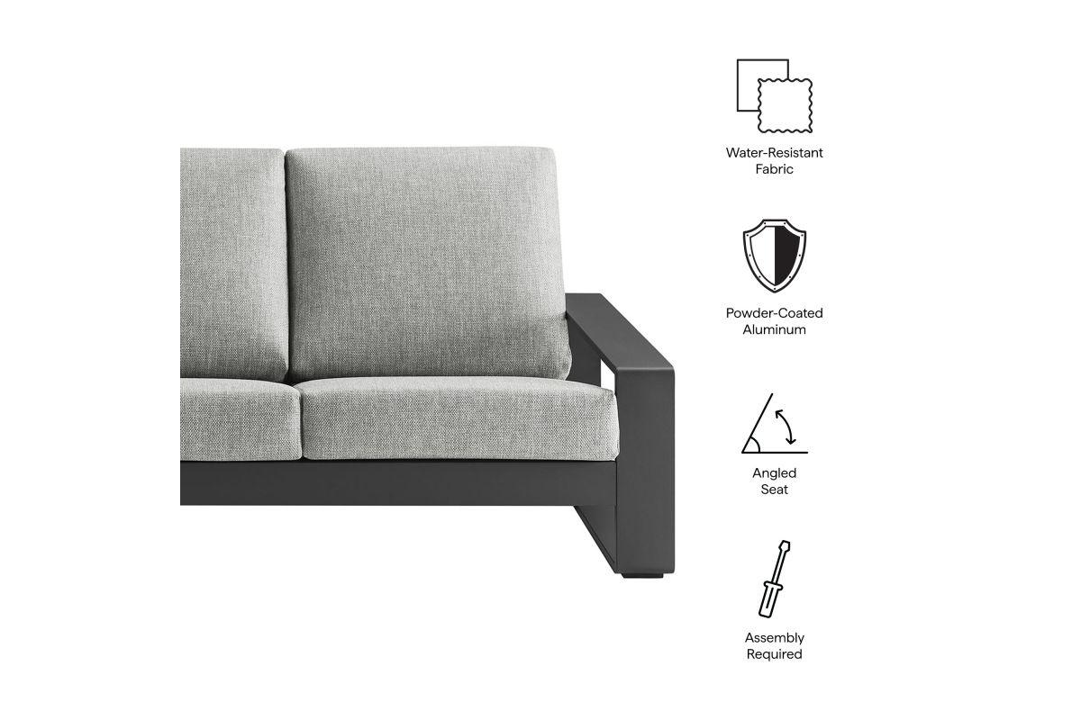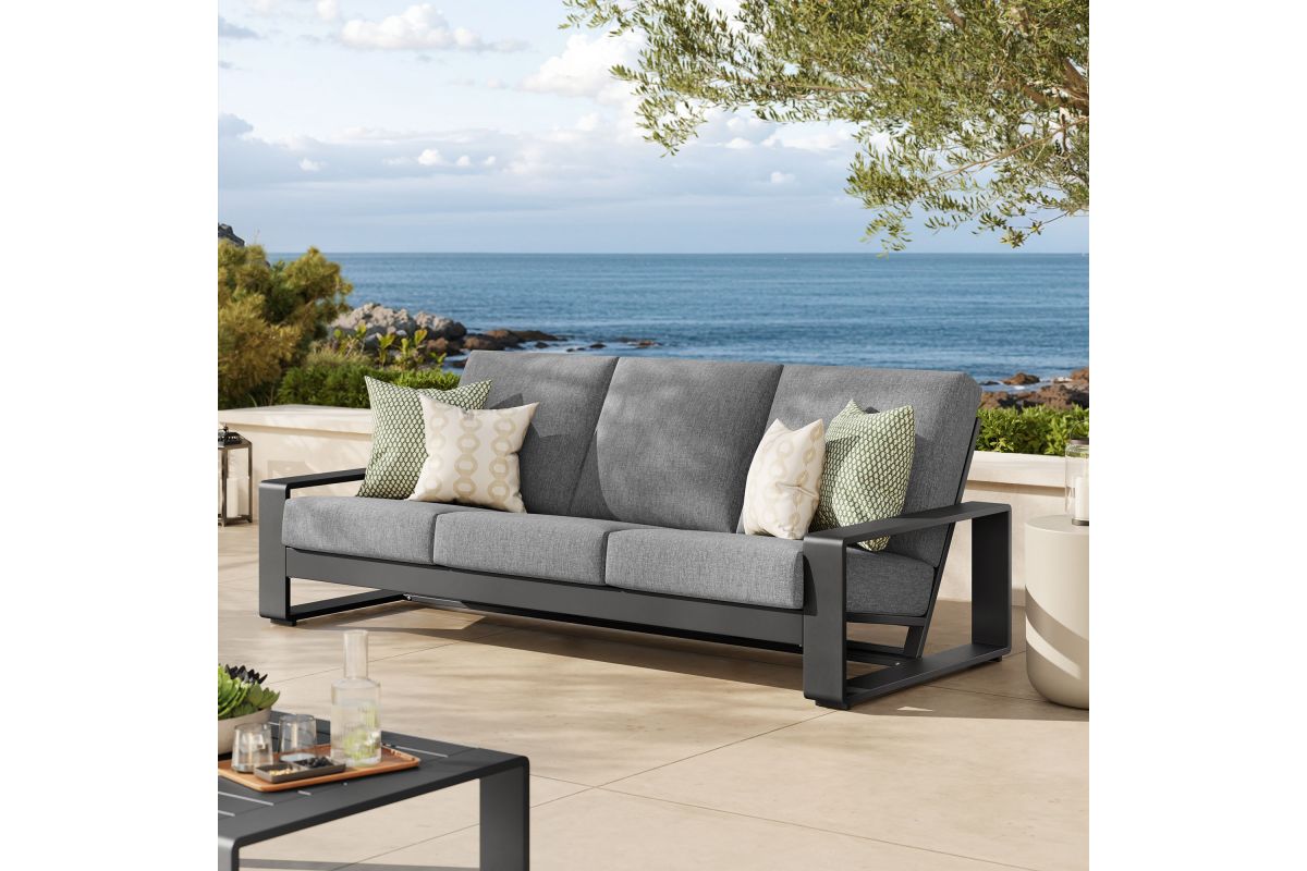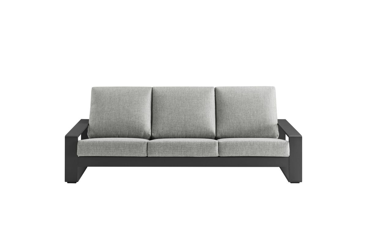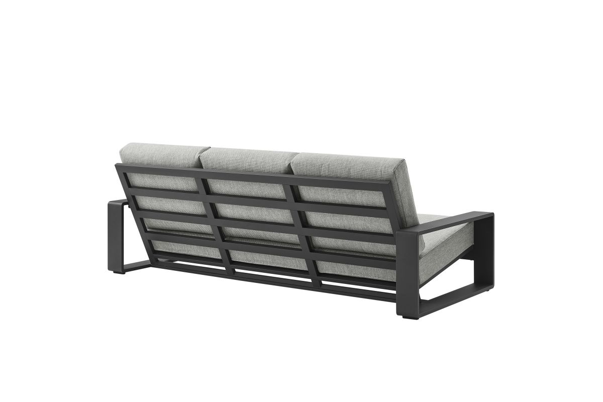Unwind in sculptural sophistication with the Lirienne Outdoor Patio Sofa. Designed for modern relaxation, this statement-making 3-seater outdoor couch showcases a sleek, rectangular frame crafted from durable powder-coated aluminum, offering both resilience and style. The deep, angled seat and plush foam cushions invite you to sink into lasting comfort, while the smooth, weather-resistant upholstery is stain-resistant and easy to maintain with removable, washable covers. The Lirienne Aluminum Patio Sofa is as practical as it is stylish, making it the perfect outdoor retreat for backyard lounging. Whether placed on a sun-drenched deck or a shaded patio, this all-weather aluminum outdoor patio sofa brings an air of refined ease to any alfresco setting. Weight Capacity: 750 lbs.