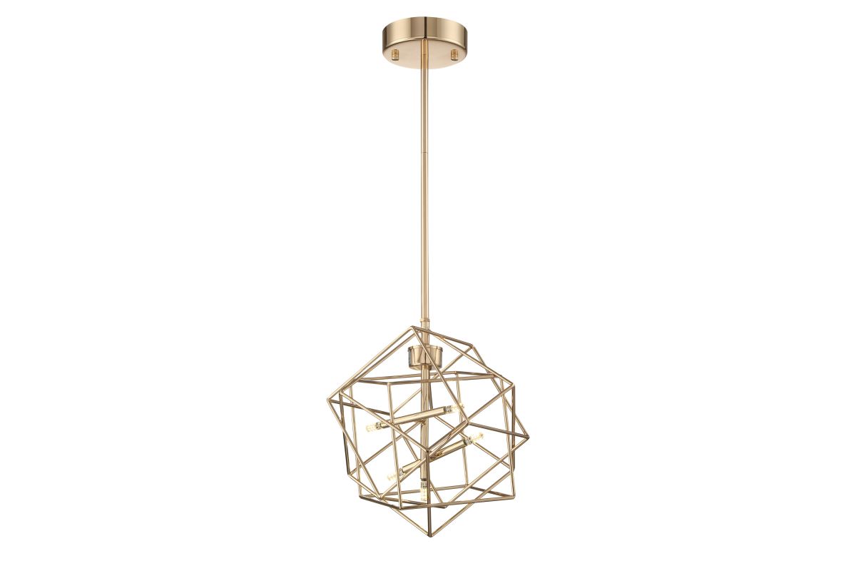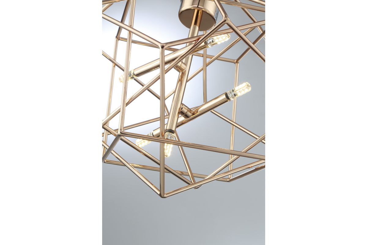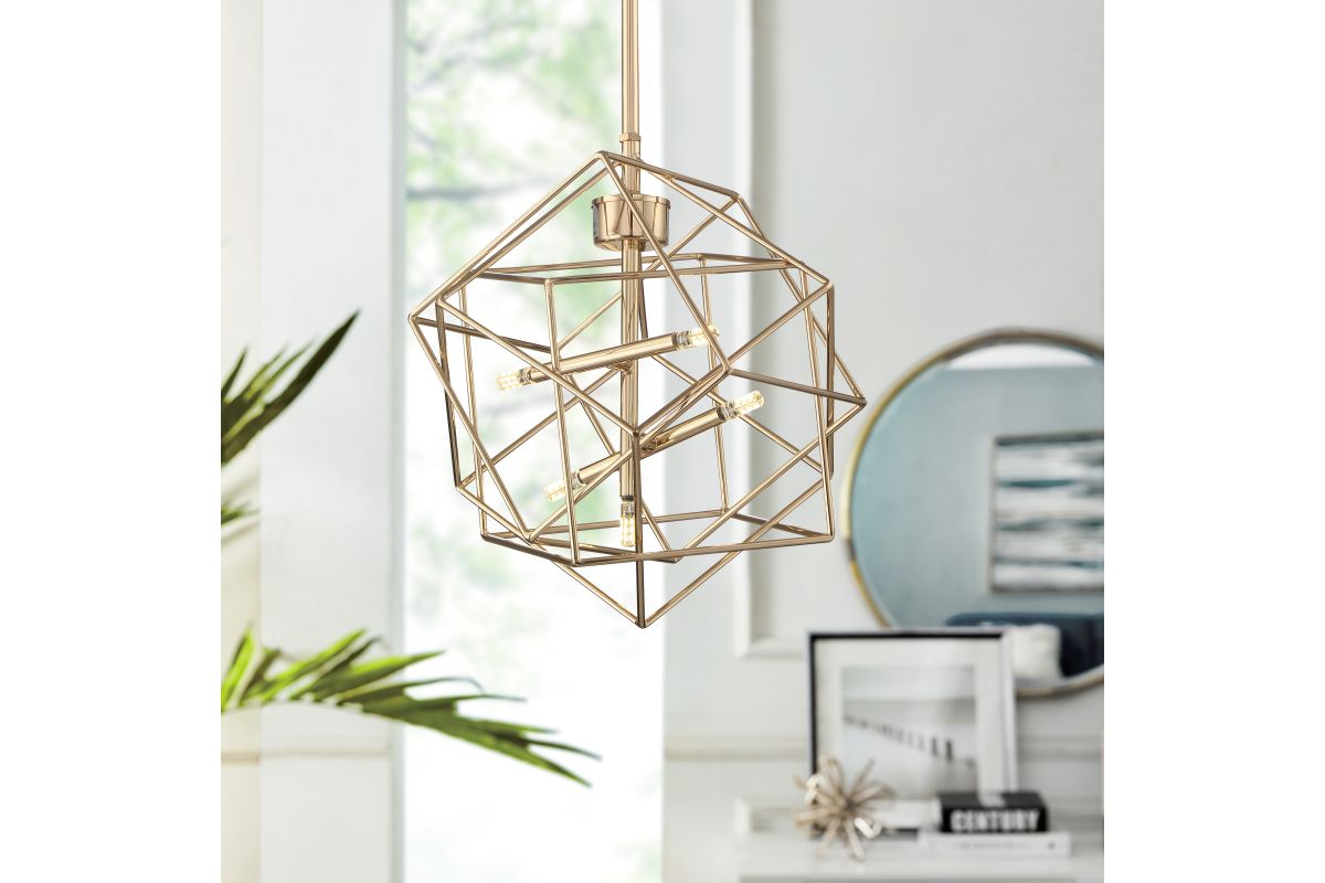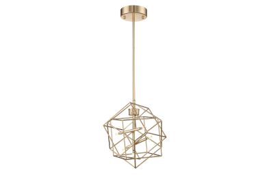 This striking pendant boasts a sleek, French gold finish over a geometric, wireframe-style shade—contemporary with a luxe edge.