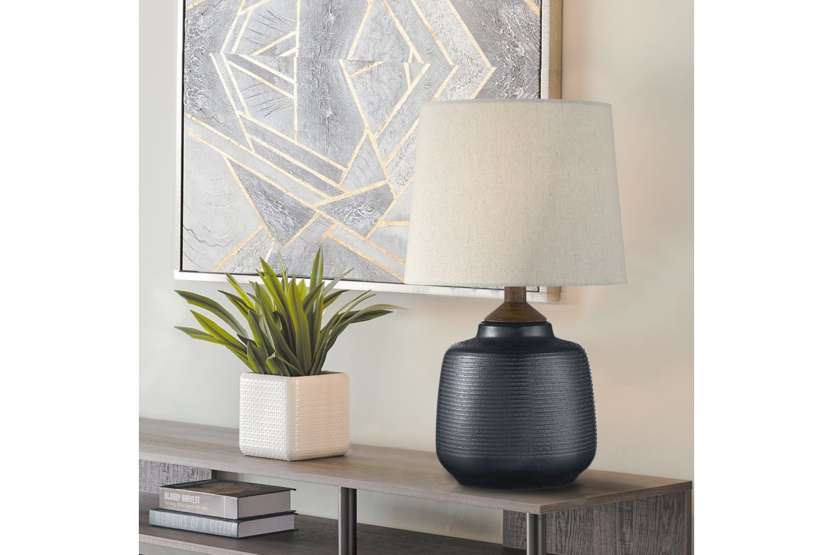 The Lite Source LS-23345BRZ Lismore Table Lamp features a painted bronze ceramic base with a retro pinstripe texture, paired with a white linen drum shade. Standing at 17 inches tall and 10 inches wide, it accommodates a 60W E27 bulb (not included), providing ample illumination for various spaces. Its compact size and neutral tones make it ideal for bedside tables, desks, or accent areas, adding both functionality and style to any interior.