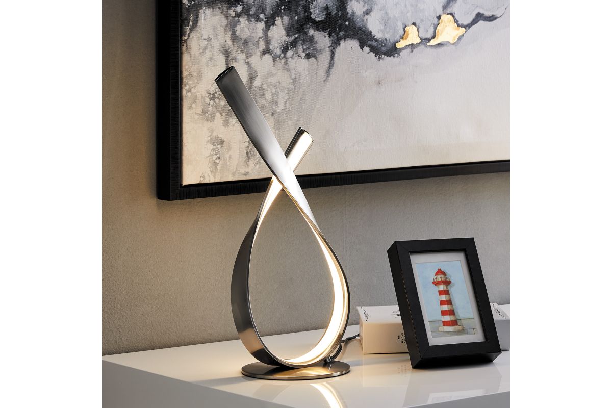 Sleek, sculptural, and effortlessly modern—the Futurist LED Loop Lamp in Satin Chrome brings contemporary sophistication to your space. Its fluid ribbon design and integrated LED lighting offer a perfect blend of artistry and innovation. The satin chrome finish adds a refined, metallic sheen, ideal for elevating minimalist interiors, modern workspaces, or high-design living areas.
