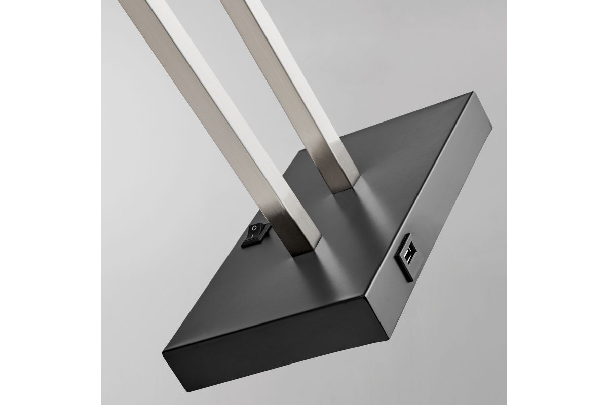 Elevate your space with this set of two modern table lamps, featuring sleek metal frames and elegant rectangular white fabric shades. The clean, angular design complements contemporary and minimalist décor styles. Each lamp includes a built-in USB charging port in the sturdy black base, making it easy to charge your devices while keeping your space clutter-free. Ideal for bedside tables, living room end tables, or home offices.