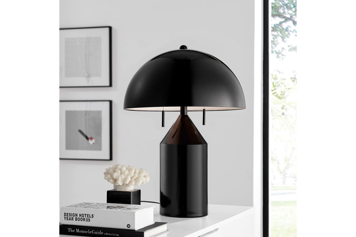 For a classy yet luxe vibe, this high-gloss metal table lamp features dome-shaped mushroom shade and a sleek and streamlined modern appearance. The lamp uses two maximum 60 watt standard-medium base bulbs, and twin on-off pull chain switches on each lamp for easy lighting control.