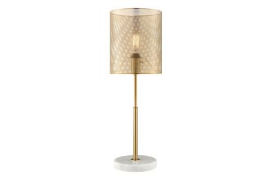 This table lamp in a lustrous gold finish evokes timeless elegance and sophistication. The mesh drum metal shade boasts a vintage-inspired design, accentuated by the striking Edison bulb, adding a touch of mid-century charm to any space. The sturdy white marble base provides a stable foundation, making it a perfect lighting solution for any décor. This lamp is a stunning statement piece that effortlessly blends form and function, illuminating your home with a warm, inviting glow while elevating your decor to new heights.
