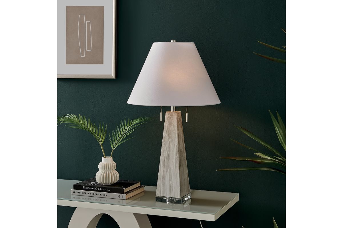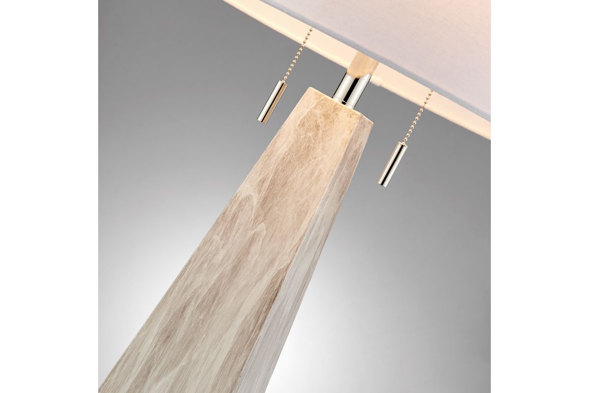 Elevate your interior decor with our modern table lamp in white and gray marble finish and crystal lamp base. This lamp is a perfect blend of sophistication and style that will complement any room. With dual pull-chain switches for convenience, and a white tapper fabric shade for a soft glow, this lamp is a statement piece that is both practical and beautiful. The exquisite combination of white and gray marble and crystal creates a sleek and elegant look that will instantly upgrade your space.