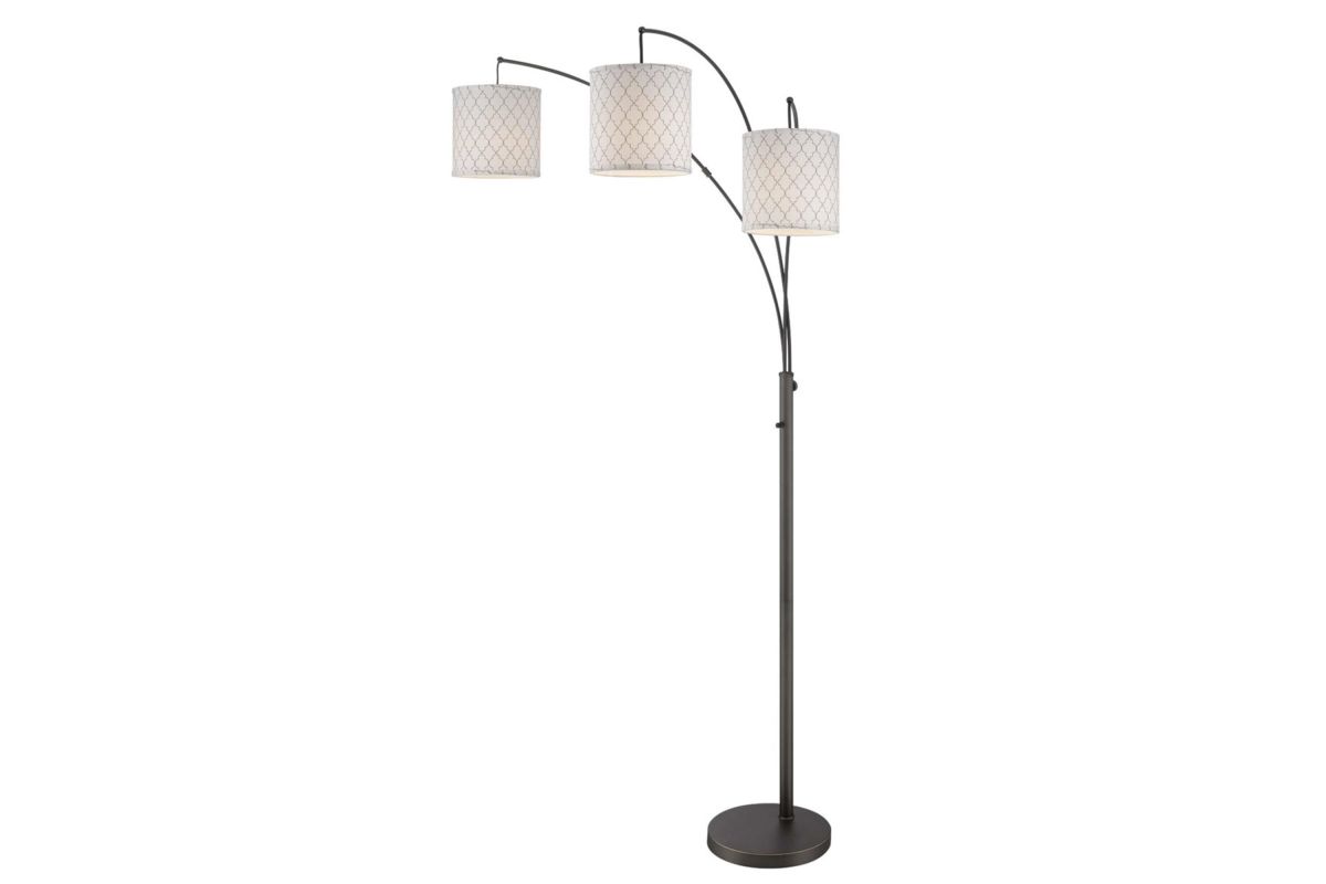 The Lite Source LS-82533 Vasanti 3-Light Arch Floor Lamp presents a striking dark bronze arched silhouette reaching 85 inches tall, 50.5 inches long, and 13 inches wide, making it ideal for casting gentle overhead light from behind seating or cozy corners. It elegantly holds three off-white fabric shades on curved arms and accommodates three 60W A-type bulbs (not included), providing abundant ambient lighting. With its sleek metal frame meeting UL safety standards and versatile, contemporary design, the Vasanti lamp blends function and style effortlessly into modern and transitional interiors.