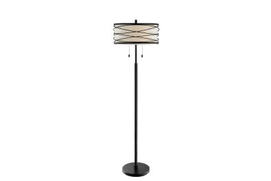 The Lumiere Floor Lamp features a sleek dark bronze finish over a metal frame, standing approximately 60.5 inches tall, 17 inches wide, and 17 inches deep. It includes a double-layer fabric shade and operates via dual pull-chain on/off switches. The lamp's design combines modern elegance with functional lighting, making it suitable for various interior styles.