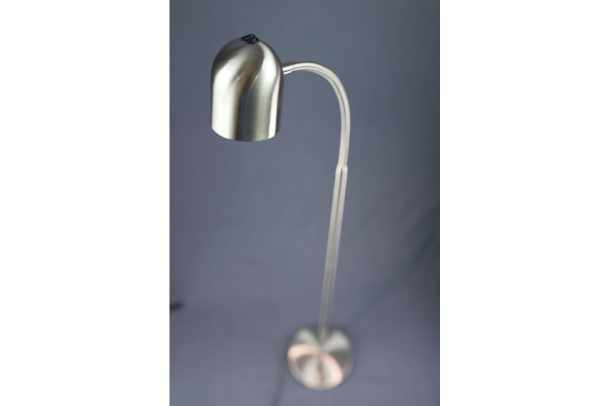 With a soft metallic sheen and contemporary profile, this brushed nickel gooseneck floor lamp offers both style and versatility. Its adjustable arm allows you to direct light exactly where you need it—whether beside a reading chair or illuminating your workspace. The silver finish blends seamlessly with modern and transitional décor, adding a polished touch without overwhelming the space.