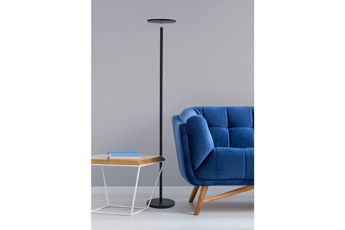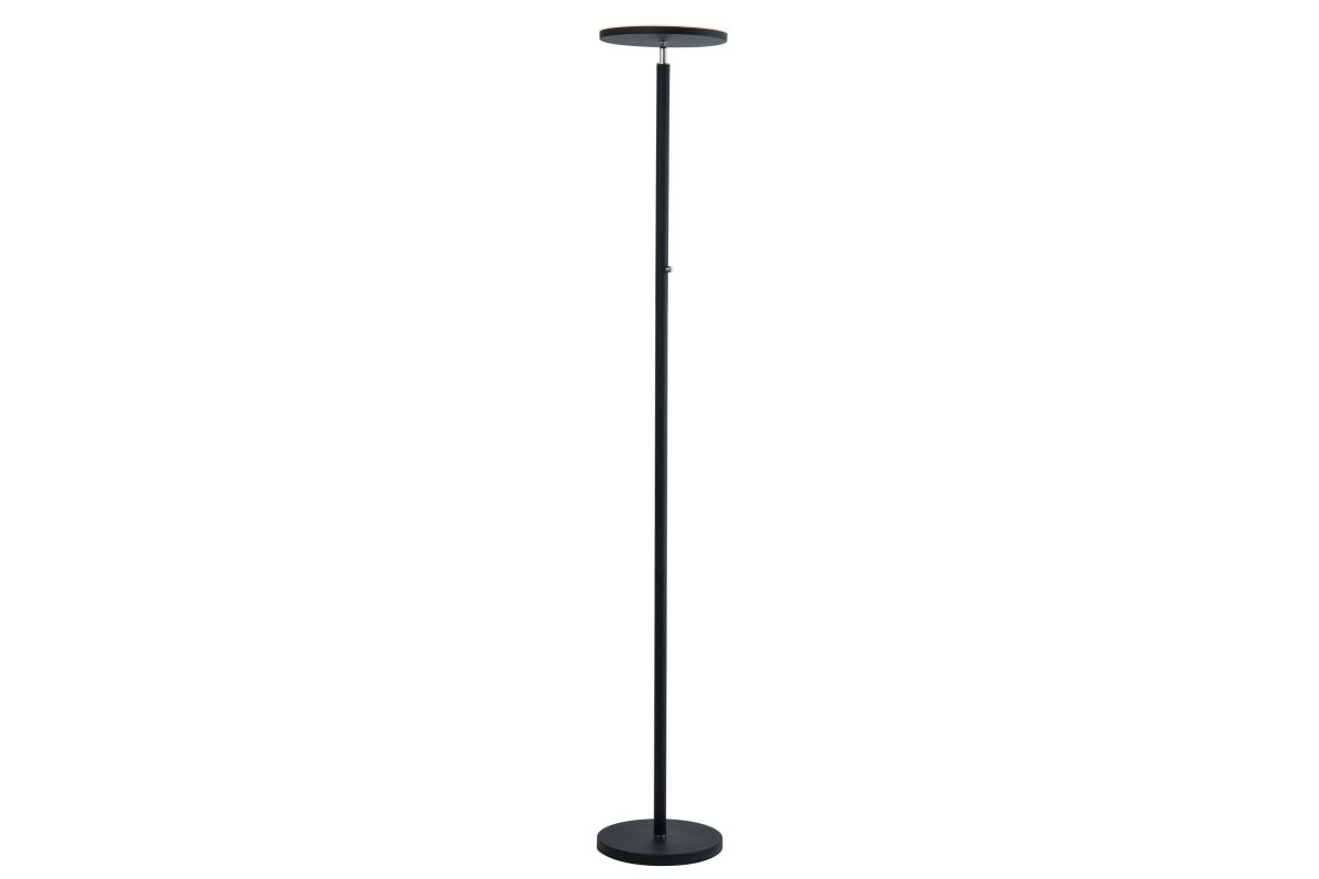 The Lite Source Monet Floor Lamp features a sleek matte black finish on a sturdy metal frame, standing approximately 71.75 inches tall with a slim 11-inch width and depth. Its integrated 30W LED panel provides bright, energy-efficient illumination, perfect for living rooms, bedrooms, or office spaces. With a contemporary torch-style design, this lamp combines modern elegance with functional lighting, offering both style and practicality in one refined piece.