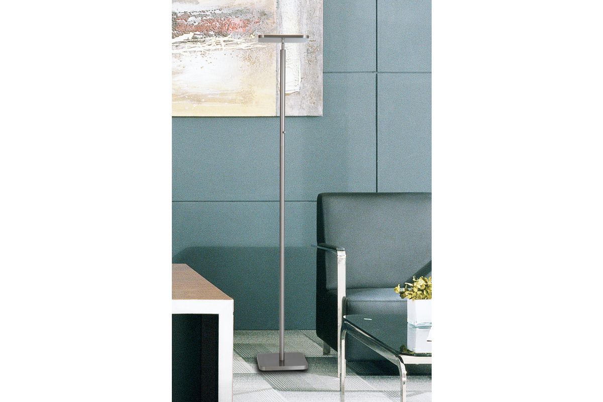 The Lite Source LS-83355BN Hector Floor Lamp stands at 71.75 inches tall with a 10.5-inch width and depth, featuring a brushed nickel finish that complements modern interiors. It includes a 30W LED panel, providing bright, energy-efficient illumination suitable for various spaces. With its sleek design and functional lighting, this lamp combines style and practicality in one refined piece.