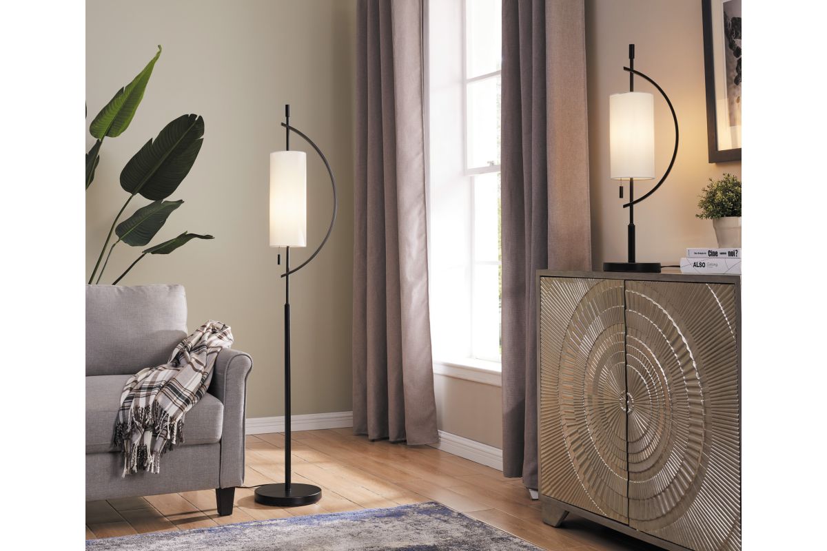 Elevate your interior with this eye-catching arc floor lamp, a perfect blend of modern art and ambient lighting. Its gracefully curved frame cradles a tall, fabric cylinder shade, casting a warm, diffused glow ideal for cozy corners, reading nooks, or modern living spaces.