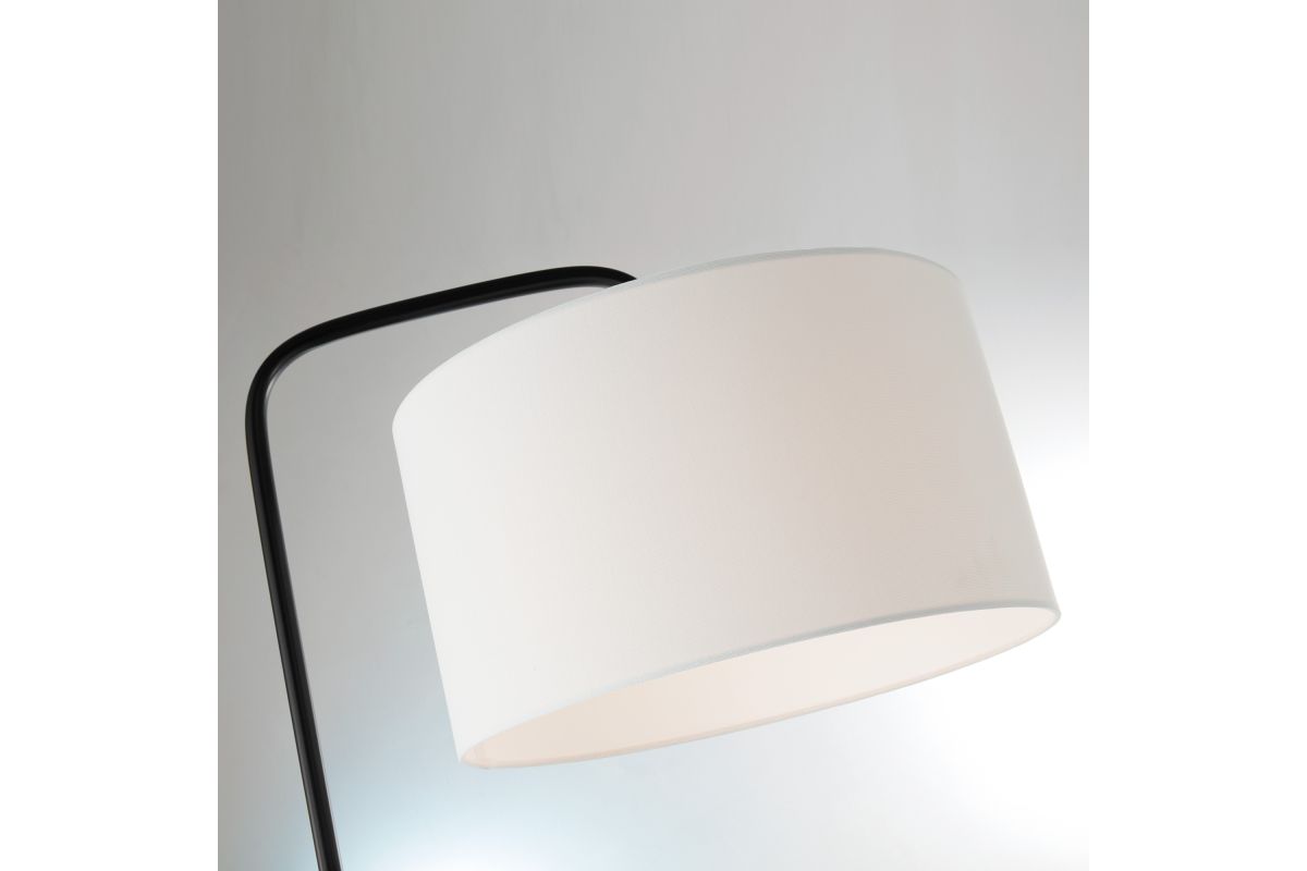 Use the simplified yet refined style of this 64” contemporary down-bridge arch floor lamp as a feature in your modern décor. Rich matte black finish capped with a crisp white linen shade, this floor lamp is a stylish addition over a sofa or desk. Powered by a 72" length of an electric cord and a convenient foot switch, this chic and versatile metal floor lamp will work in a variety of spaces.