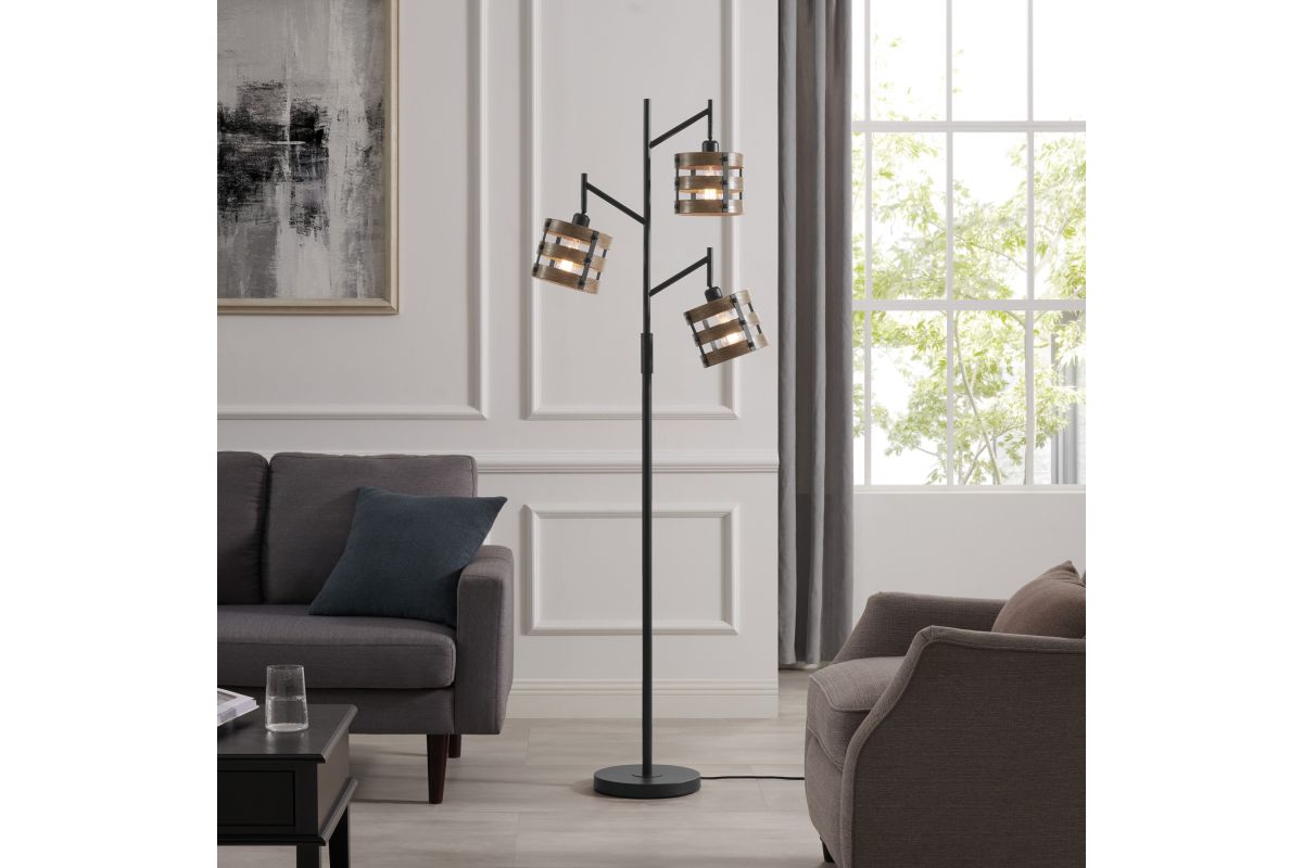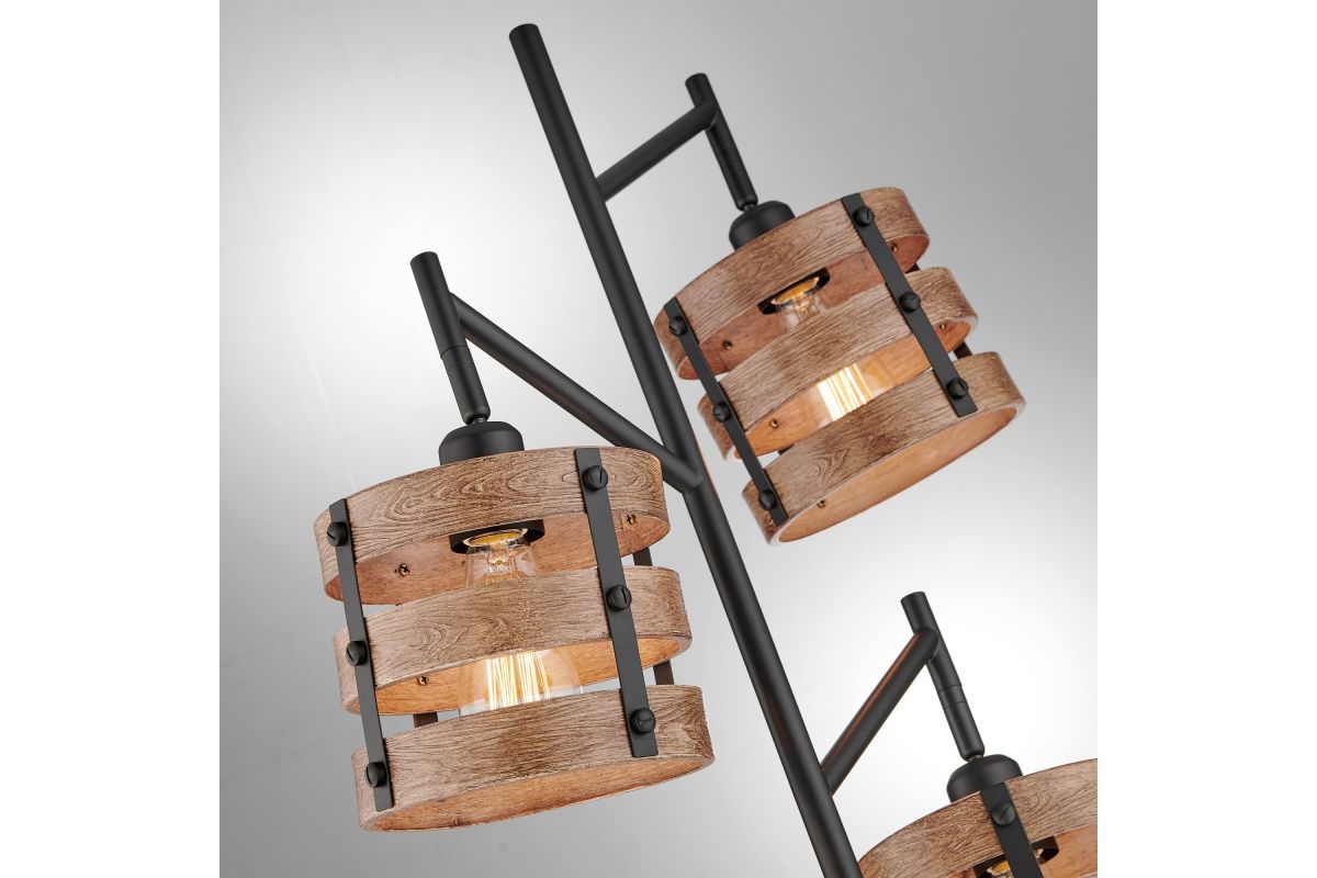 Introducing the exquisite 3-light tree floor lamp, a stunning addition to any space. Crafted with utmost care, this lamp boasts a rich brown wood grain finish lamp shade made with heavyweight metal, providing a sense of durability and longevity. The vintage-style Edison bulbs are exposed, lending an old-world charm to the piece, while the sleek black metal construction adds a contemporary touch. Perfect for a modern loft or a rustic farmhouse, this lamp is ideal for sectionals and sofas, bringing warmth and elegance to your living space.
