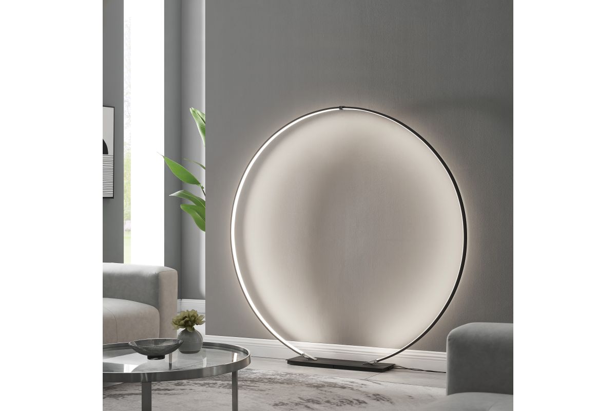 Experience the awe-inspiring beauty of minimalist design with our oversized, brilliantly luminous circular LED floor lamp—a true centerpiece for any space. Crafted from durable metal with a sleek metallic finish, this lamp is crowned by an aluminum and acrylic diffuser. However, its standout feature lies in its gracefully curved and delicately slim silhouette. Perfect for positioning behind a sofa, along a foyer wall, or even in the master bedroom, it exudes an ultra-modern vibe. This circular marvel can transform into two separate arch floor lamps by removing the cover on the base, allowing you to adorn both sides of seating areas or your favorite armchair. Enjoy customizable lighting with a convenient foot switch offering 4-way dimming control. Illuminate your space with contemporary elegance and versatility.