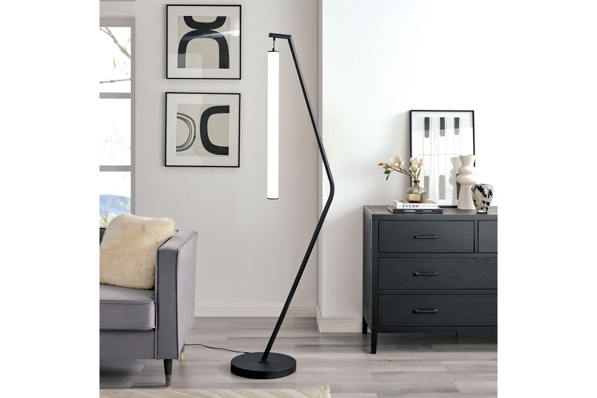 This 71" LED floor lamp exudes a sleek, modern charm with its elongated lines. The clean-lined angular arc frame and substantial base not only contribute to its style but also enhance its functionality. The stunning slim cylinder shade, crafted from white acrylic, elegantly diffuses an energy-efficient and radiant glow, beautifully illuminating seating areas or your preferred armchair. For your convenience, this lamp offers customizable lighting through a user-friendly foot switch, providing 4-way dimming control to suit your preferences.