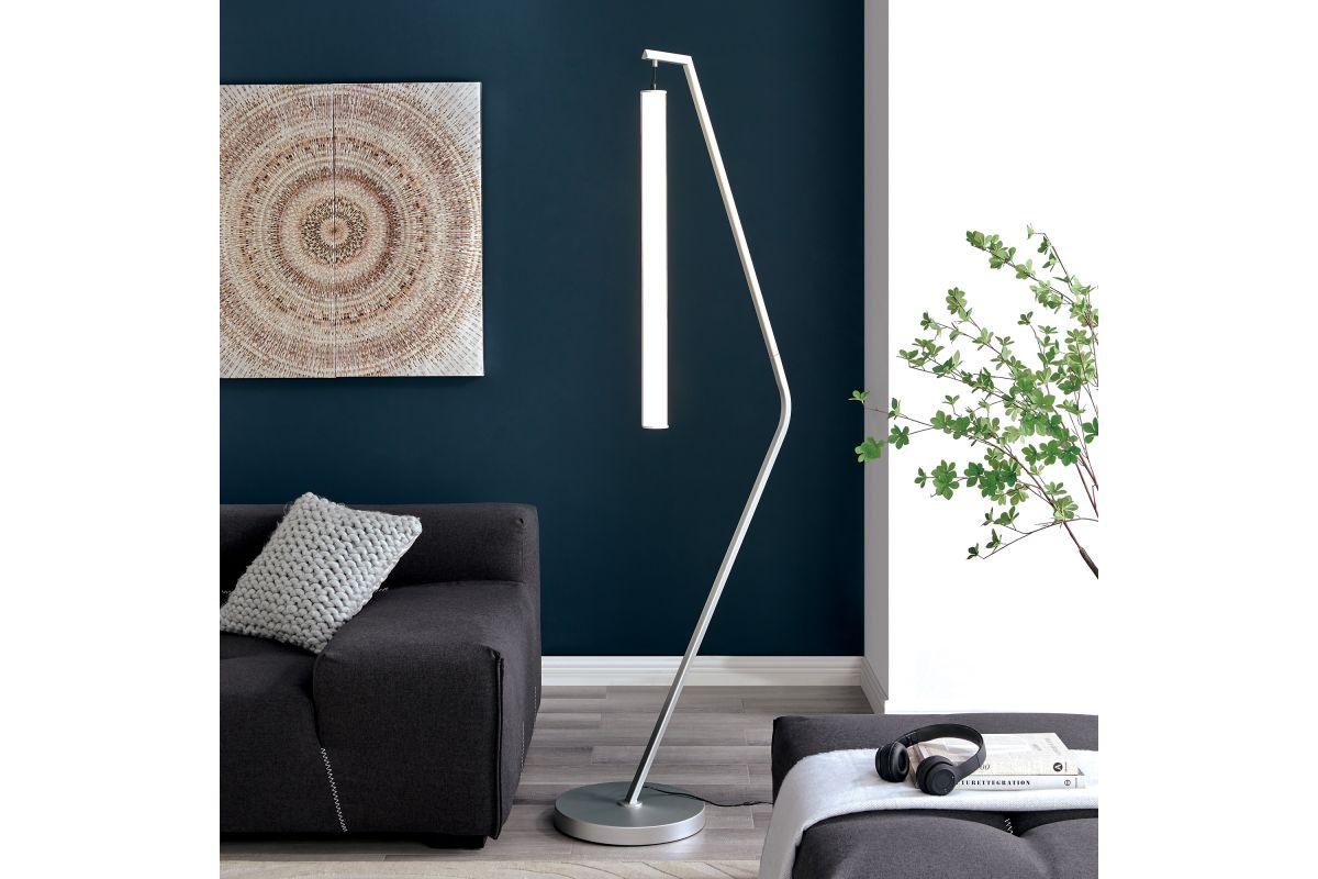 This 71" LED floor lamp exudes a sleek, modern charm with its elongated lines. The clean-lined angular arc frame and substantial base not only contribute to its style but also enhance its functionality. The stunning slim cylinder shade, crafted from white acrylic, elegantly diffuses an energy-efficient and radiant glow, beautifully illuminating seating areas or your preferred armchair. For your convenience, this lamp offers customizable lighting through a user-friendly foot switch, providing 4-way dimming control to suit your preferences.