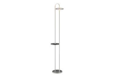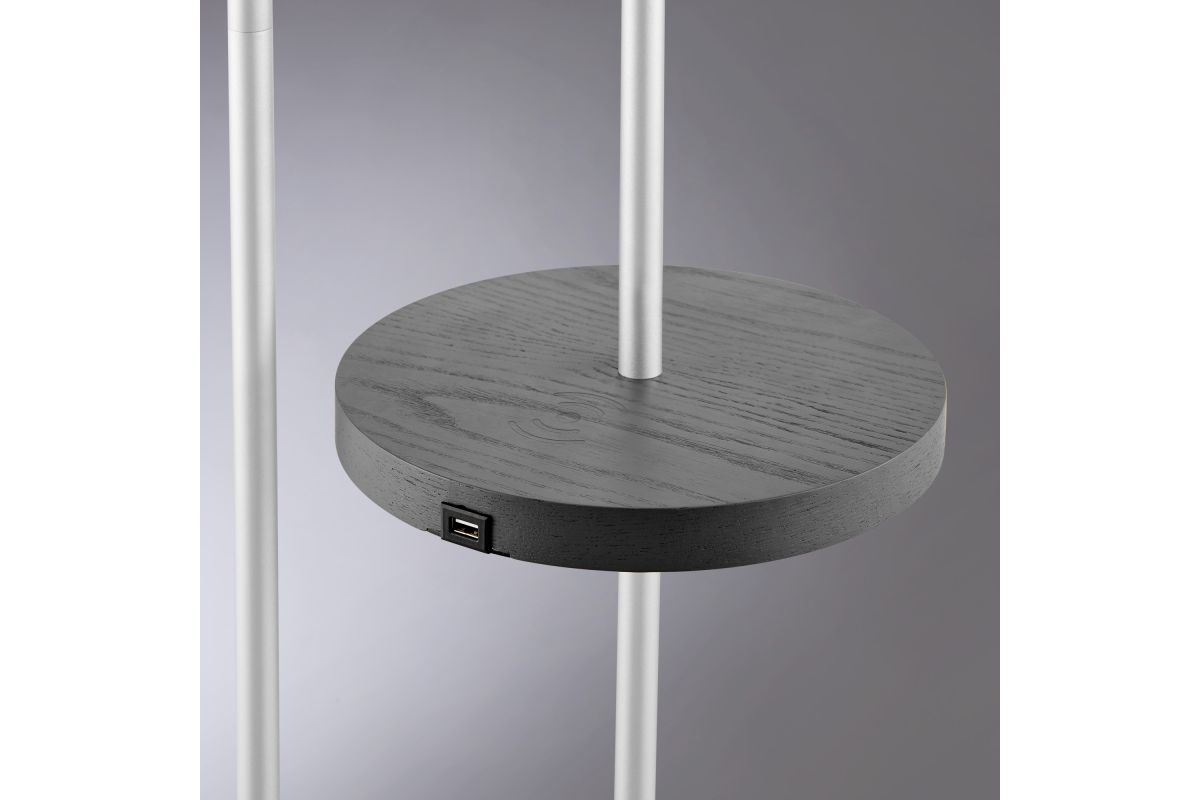 Minimalist LED Floor Lamp with Shelf – Black & Nickel Finish. This ultra-sleek LED floor lamp brings a futuristic edge to contemporary interiors, combining ambient lighting with practical design. Featuring a built-in shelf and streamlined silhouette, it offers both form and function in one elegant package.