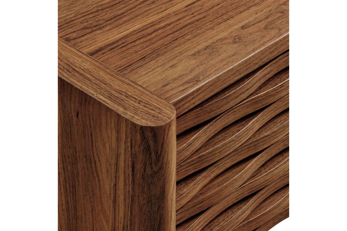 Simple in purpose, the Emric Floating TV Stand brings a soft, sculpted feel to functional media storage. Made from a laminated wood blend with a smooth finish, this wall-mounted TV cabinet features slatted doors with a subtle wave design on a black backdrop that provides depth and movement. Two drop-down doors open to reveal interior shelving with cable management cutouts, perfect for organizing game consoles, streaming boxes, and other living room essentials. Designed to mount directly on the wall, this modern floating media console frees up floor space while offering plenty of concealed storage. Whether used under a mounted TV in the living room or as part of a broader media center setup, Emric delivers visual impact and everyday utility. Wall mounting and assembly required. Cable management hole with grommet included.