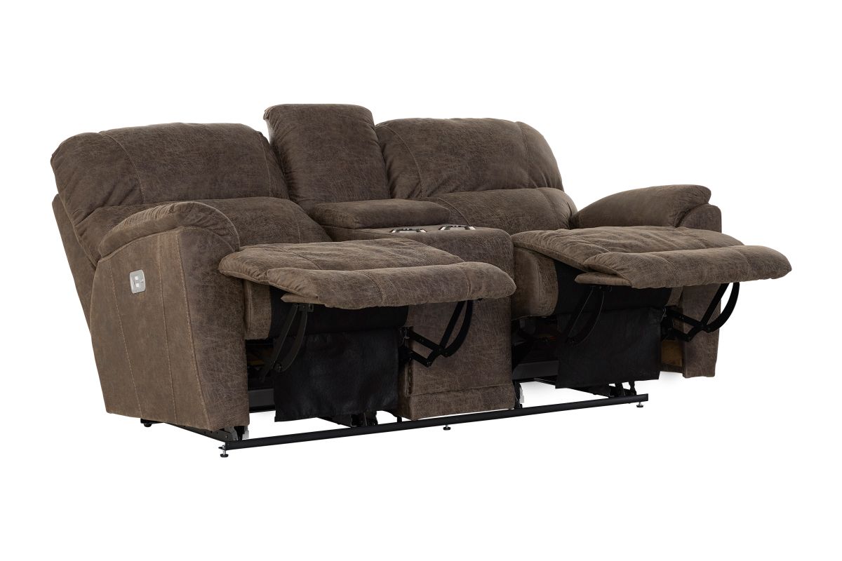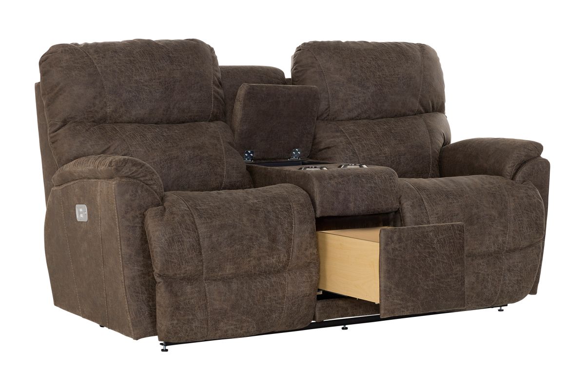 Experience personalized comfort and modern functionality with the Trouper Dual Power Reclining Console Loveseat. Designed with soft curves and plush contours, this loveseat delivers the perfect blend of relaxation and everyday practicality.