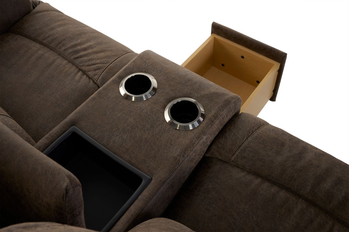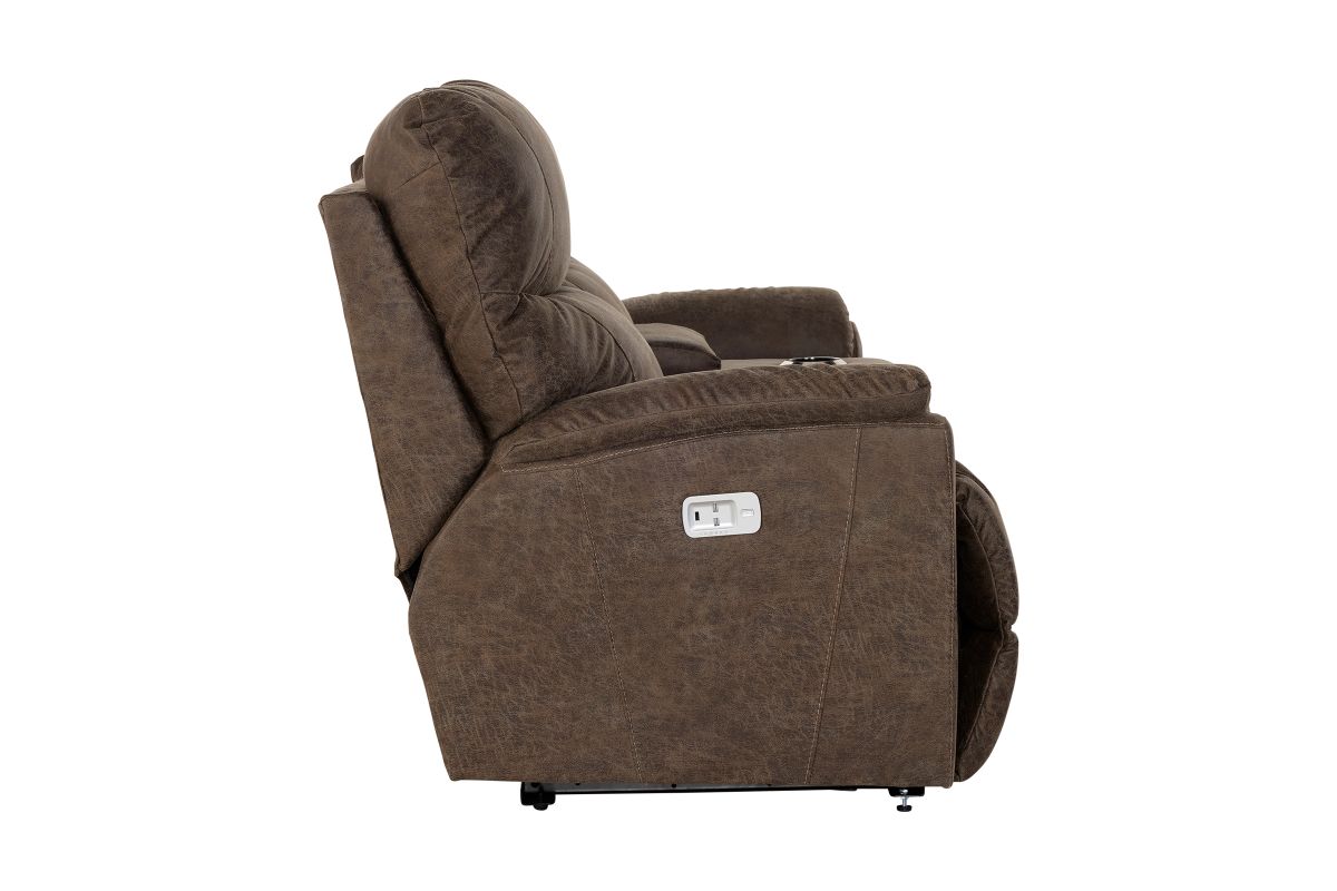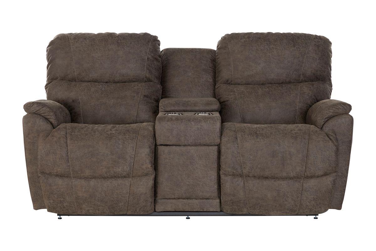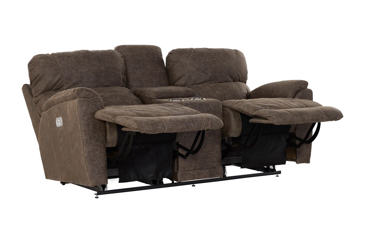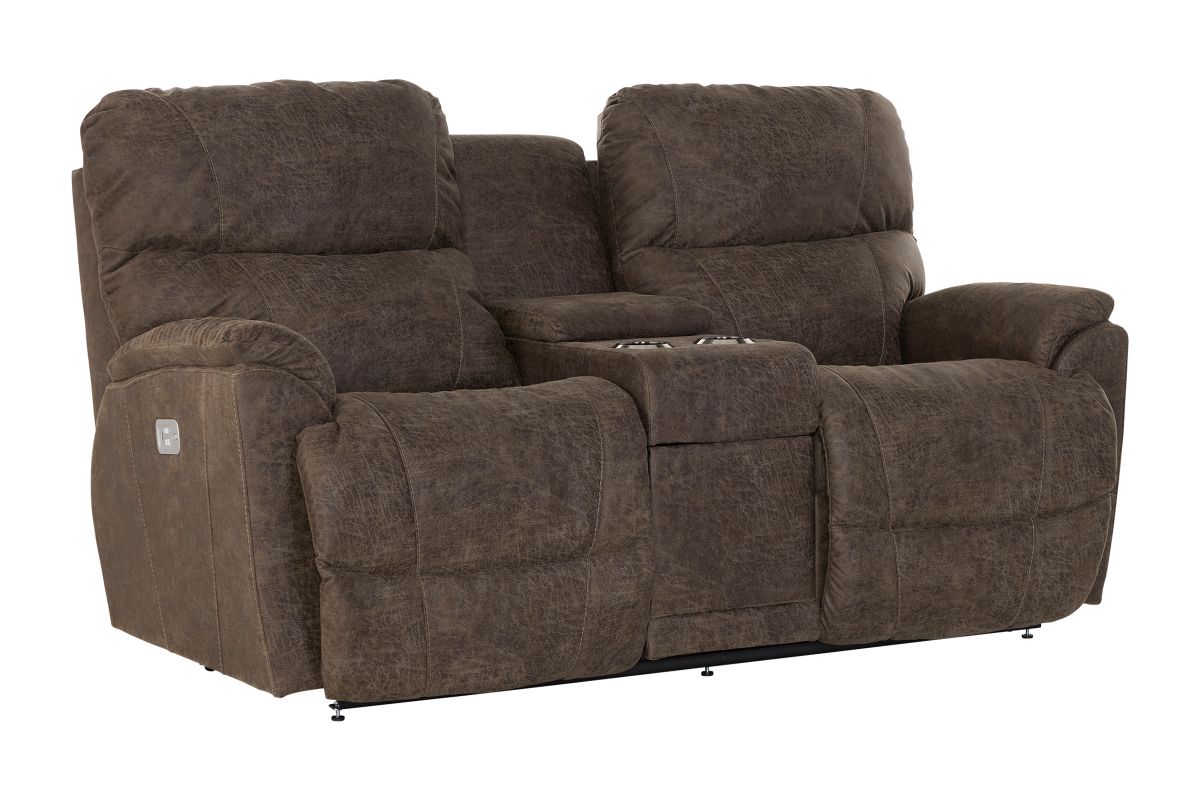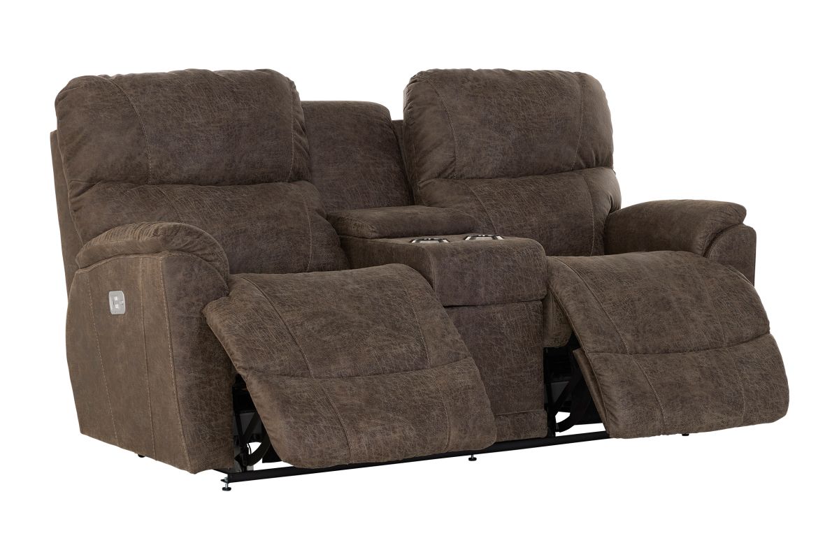 Crafted with premium-grade fabrics and leathers rigorously tested to resist wear and fading, the Trouper Dual Power Reclining Console Loveseat ensures long-lasting style and durability.