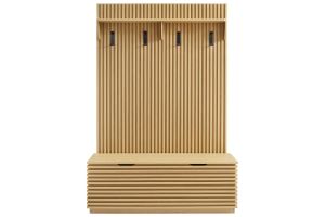 Bring warm texture and clean lines to your space with the Render Freestanding Bathroom Cabinet. This modern freestanding bathroom storage cabinet features grooved slatted doors, a natural wood-look finish, and open shelving that adds visual interest to minimalist or mid-century-inspired bathrooms. Four interior shelves (two adjustable) provide versatile storage for linens, towels, and toiletries, while the top open compartments are perfect for styling with candles, baskets, or everyday essentials. Soft-close hinges offer a quiet, smooth-close experience. Whether used as a linen cabinet in a main bath or a towel storage cabinet in a guest suite, this standing design offers generous vertical storage with timeless appeal.