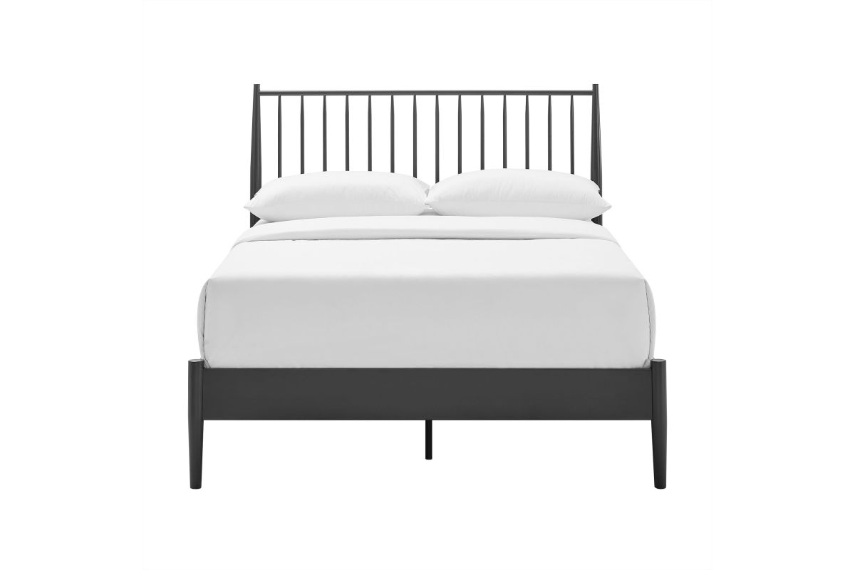 Blending classic charm with modern edge, the Adair Full Platform Bed makes a bold yet versatile statement in any bedroom. Crafted from durable iron, this full size bed frame features a tall spindle headboard that nods to classic farmhouse and mid-century modern aesthetics alike. The clean lines and vertical rods create a striking focal point, while the low-profile platform bed frame adds a grounding presence that complements both minimalist and traditional interiors. A series of sturdy wood slats provides reliable support for your mattress—no box spring required—while center support legs add enhanced stability. From urban lofts to cozy cottages, this metal spindle bed delivers enduring style, strong construction, and everyday comfort. Weight Capacity: 400 lbs.