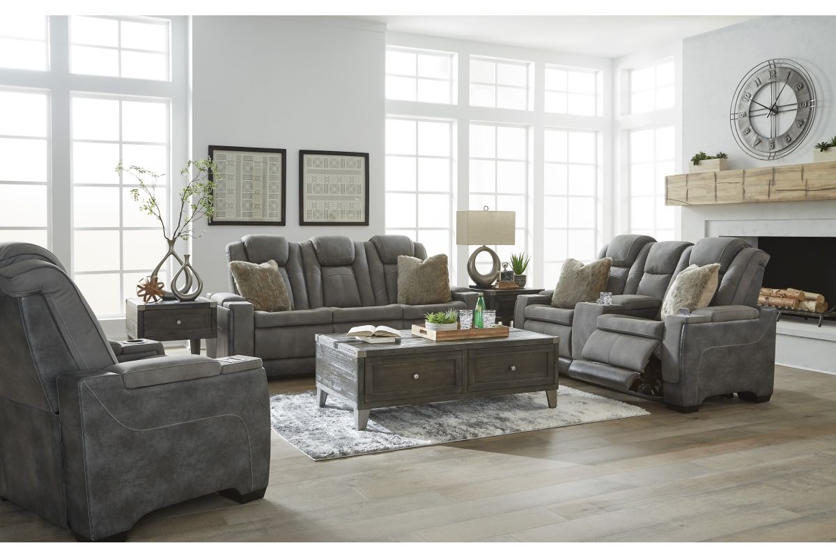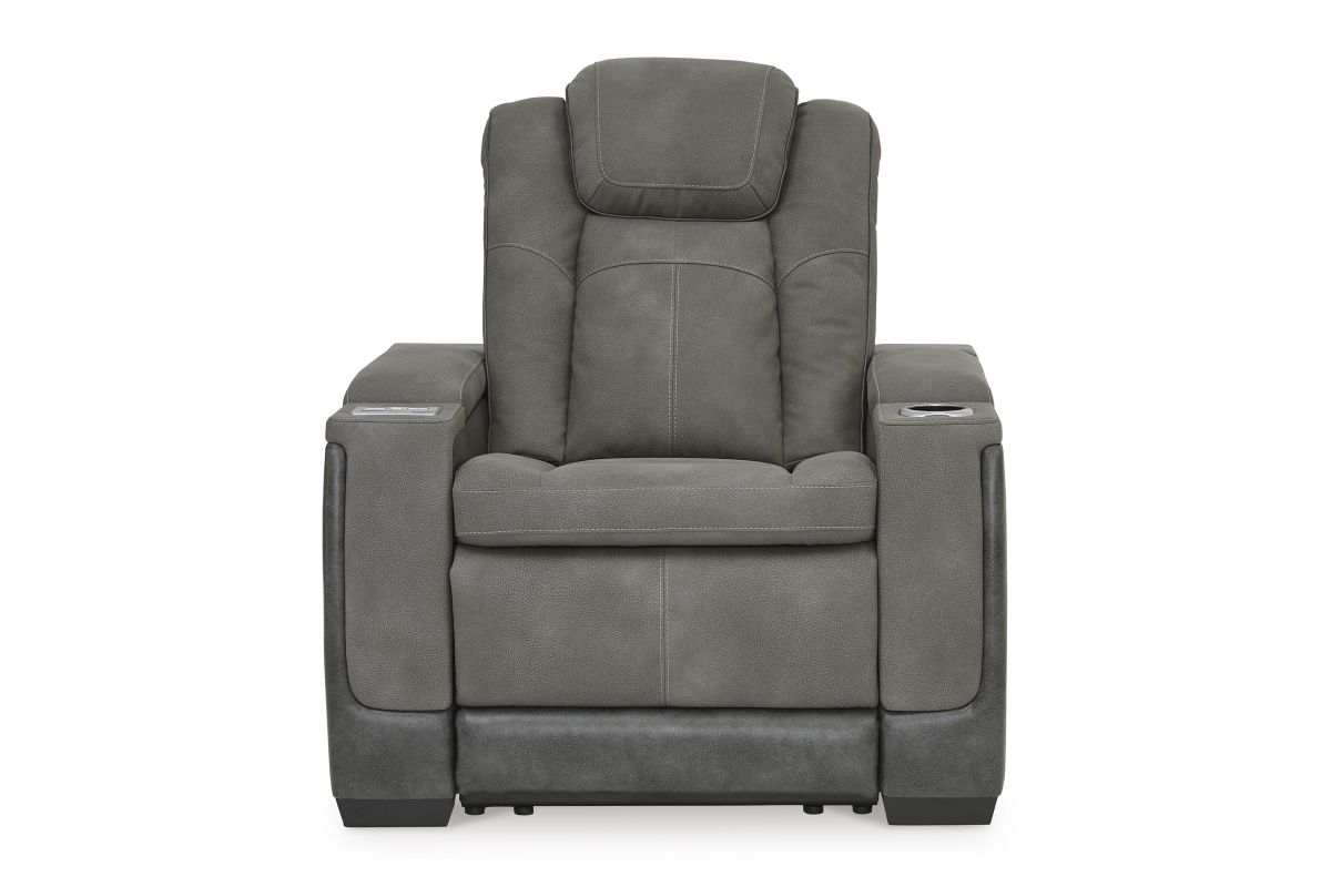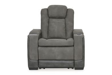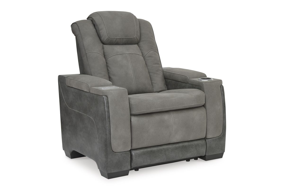 This sleek, ultra-modern power recliner has it all. With designer style and head-to-toe comfort, it has the upscale look of leather at a scaled-down faux leather price. Its gray two-tone upholstery is more durable and water-repellent than regular leather, an added bonus for families. Features including wireless and USB charging, an adjustable headrest and an extended ottoman make this the next generation of power recliners.