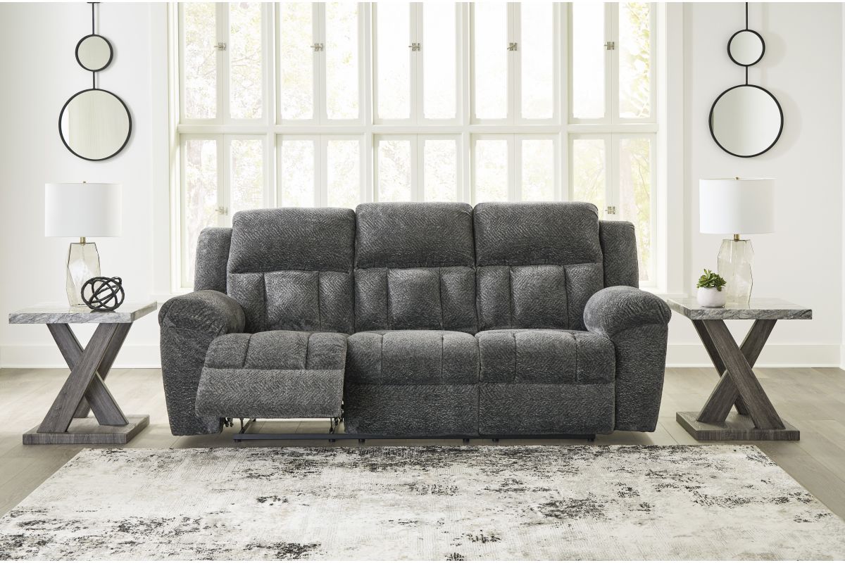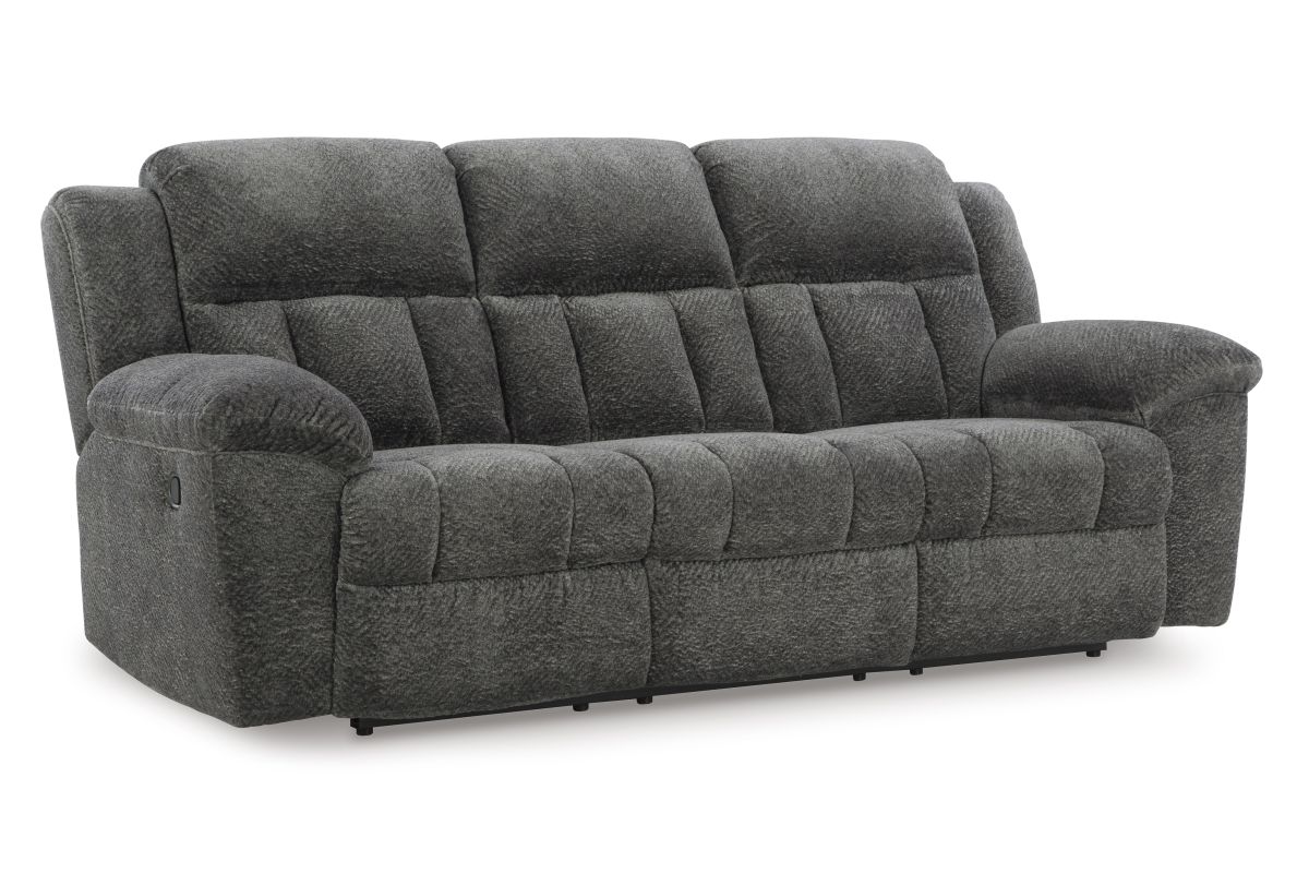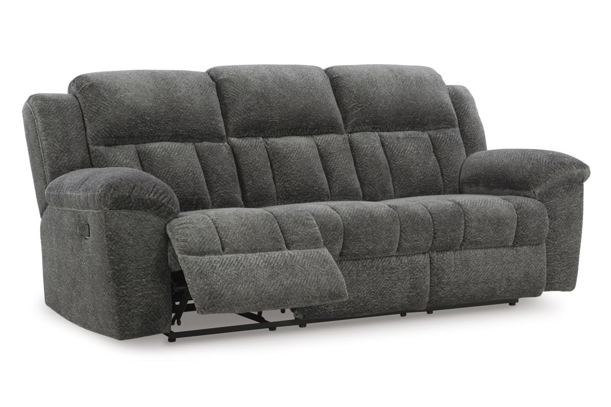 With its large-scale design, this extra-spacious reclining sofa is a masterclass in accessible style. Plush, ultra-soft upholstery keeps everyone cozy as you lounge with family or guests. In a neutral hue, it seamlessly suits different aesthetics as your taste changes. Time to relax? The sofa's pull tab reclining allows you to mellow out with ease.