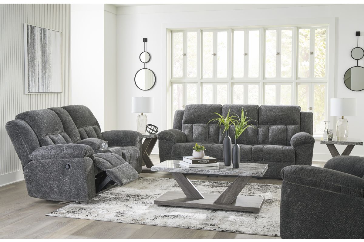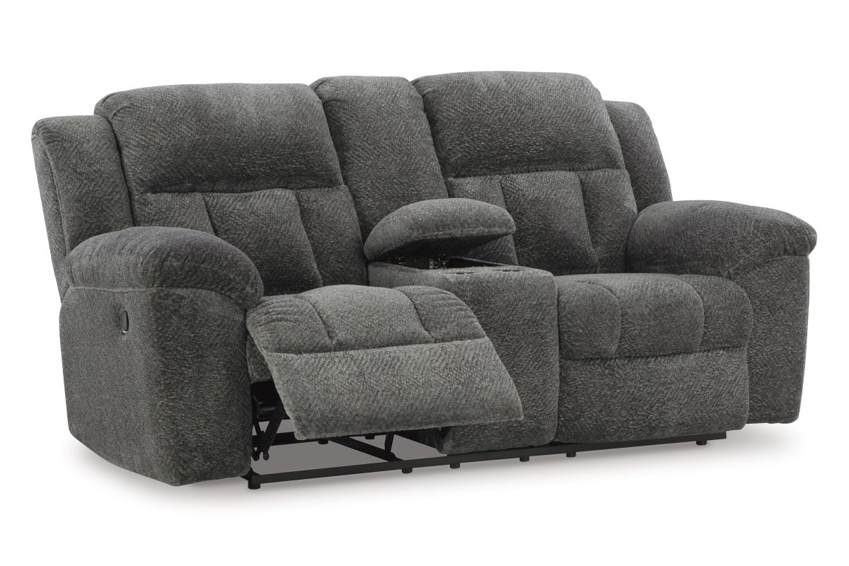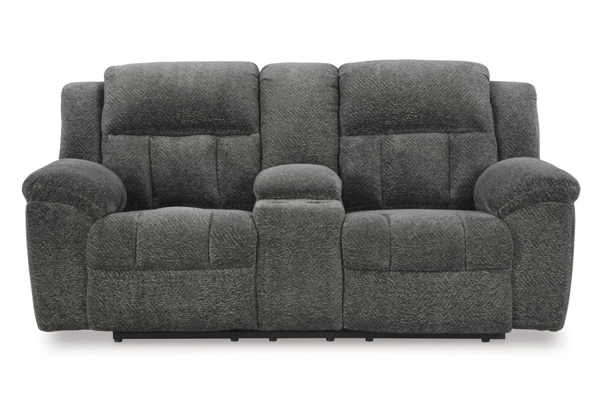 With its large-scale design, this extra-spacious reclining loveseat with console is a masterclass in accessible style. Plush, ultra-soft upholstery keeps everyone cozy as you lounge with family or guests. In a neutral hue, it seamlessly suits different aesthetics as your taste changes. Time to relax? The loveseat's pull tab reclining allows you to mellow out with ease.