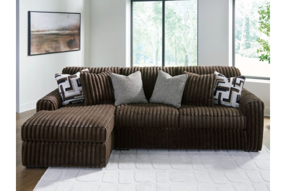 - Includes 2 pieces: left-arm facing corner chaise and right-arm facing sofa